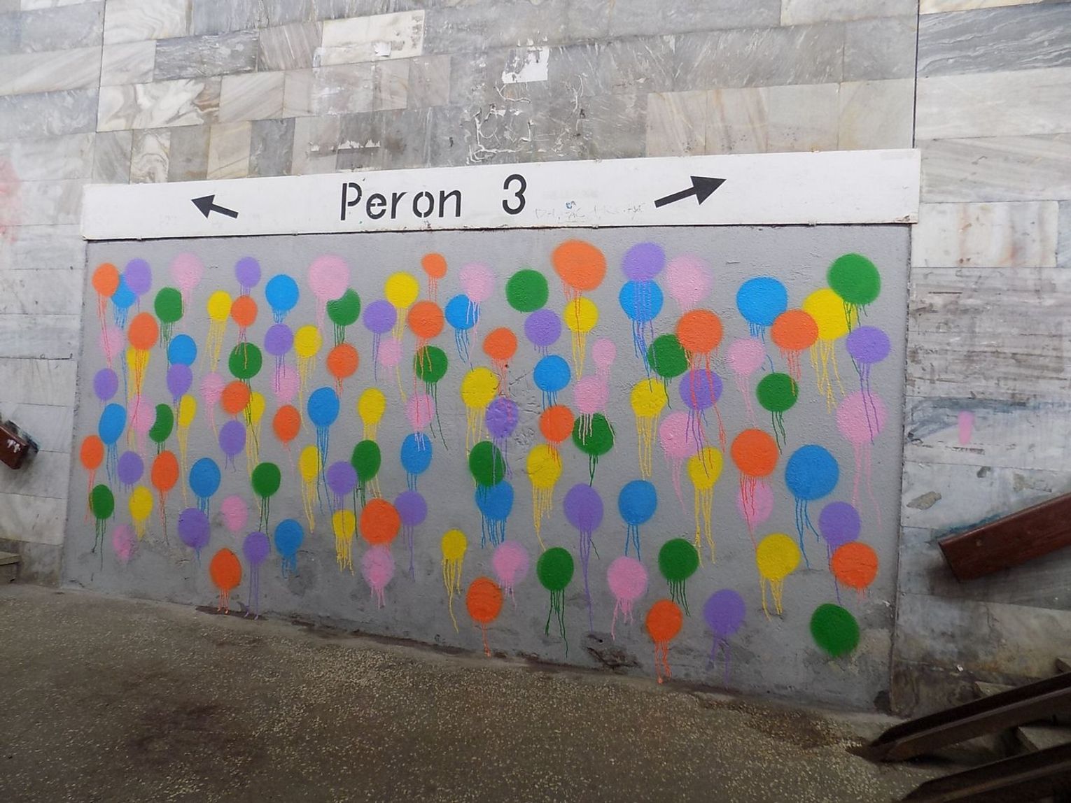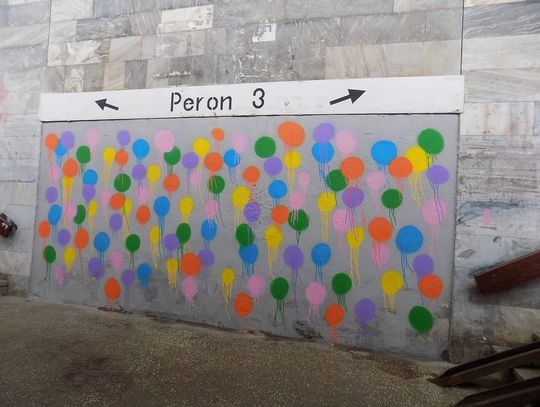 Barwnie zrobiło się nawet w dworcowym tunelu. Cała ściana „zakwitła” gamą barwnych baloników, na widok których prawie każdy się uśmiecha.
