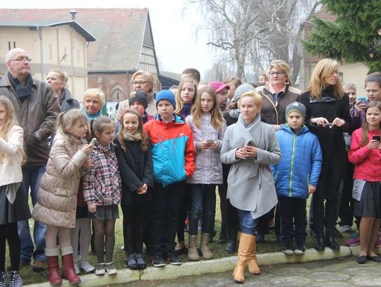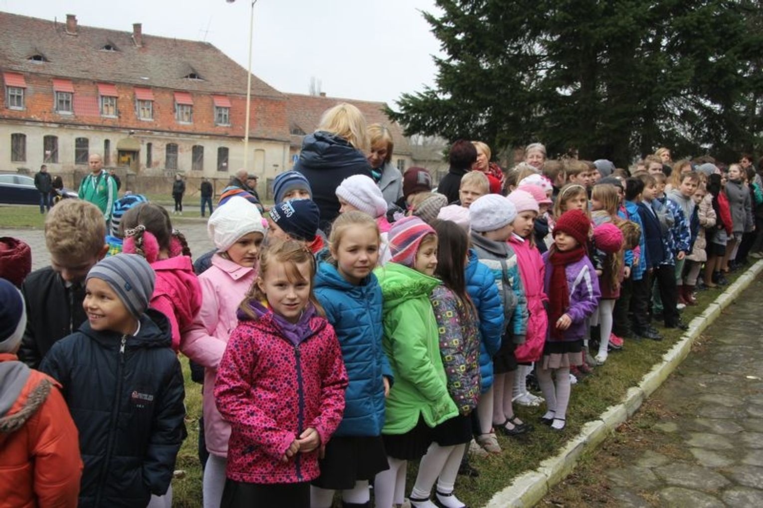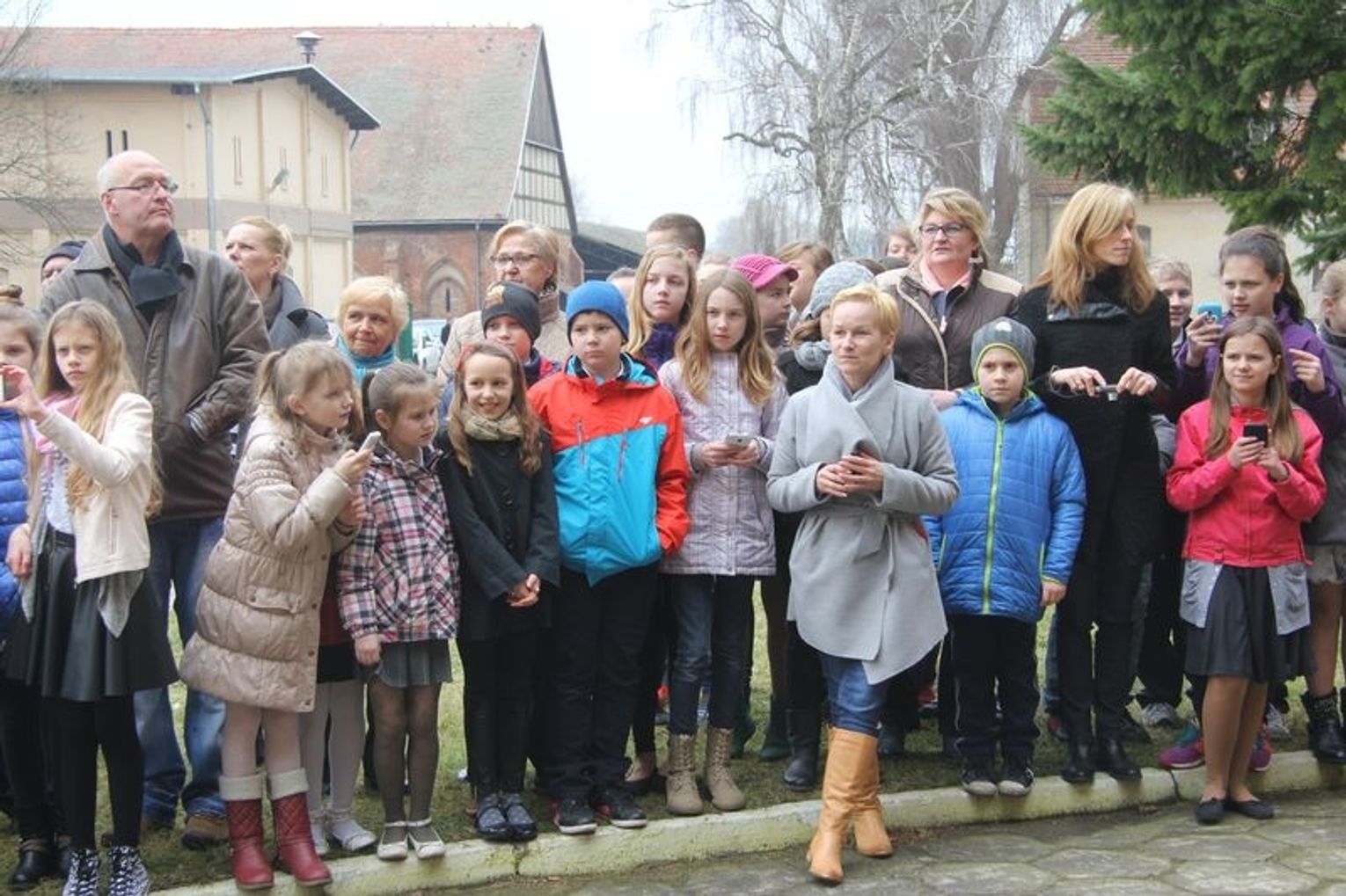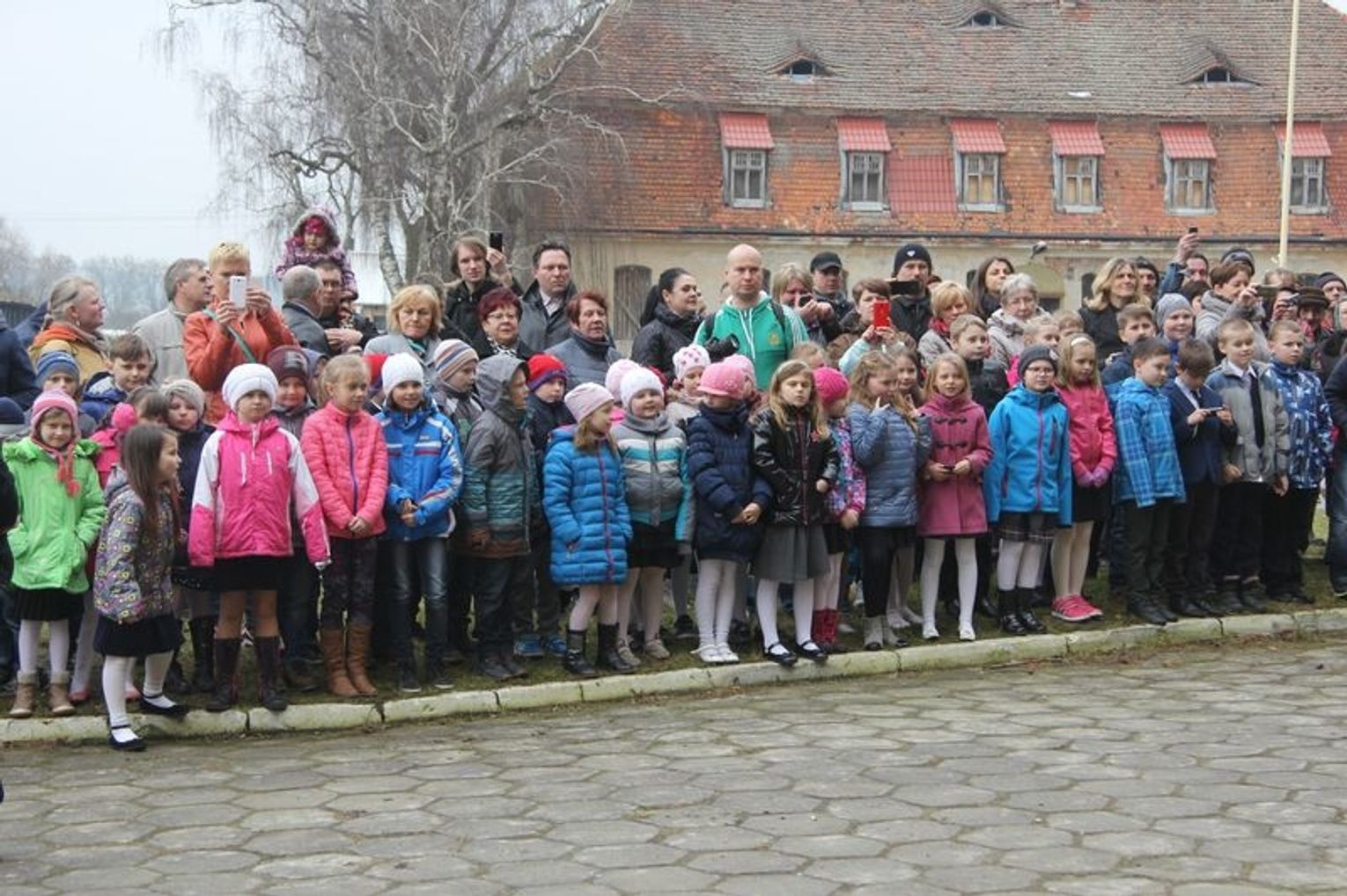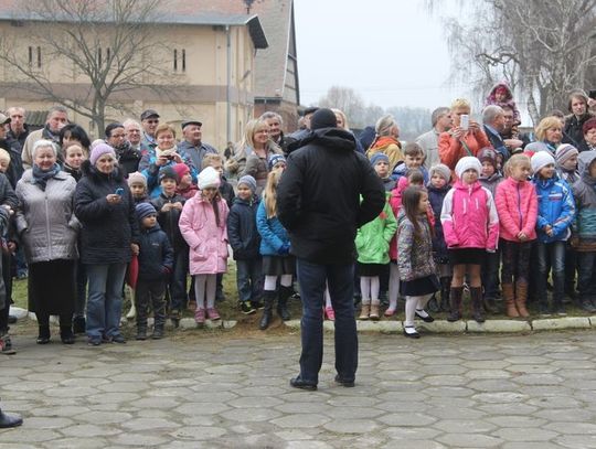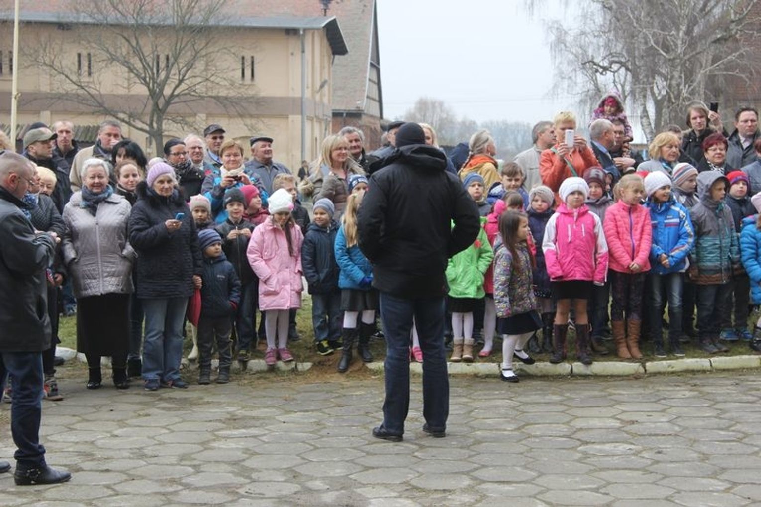 Ów prezent dobrze widać na jednym ze zdjęć w bogatej fotogalerii. Zobaczymy w niej mnóstwo ludzi. Głównie to dzieci i młodzież szkolna z Zespołu Szkół w Kołbaczu (jedyna szkoła w gminie).