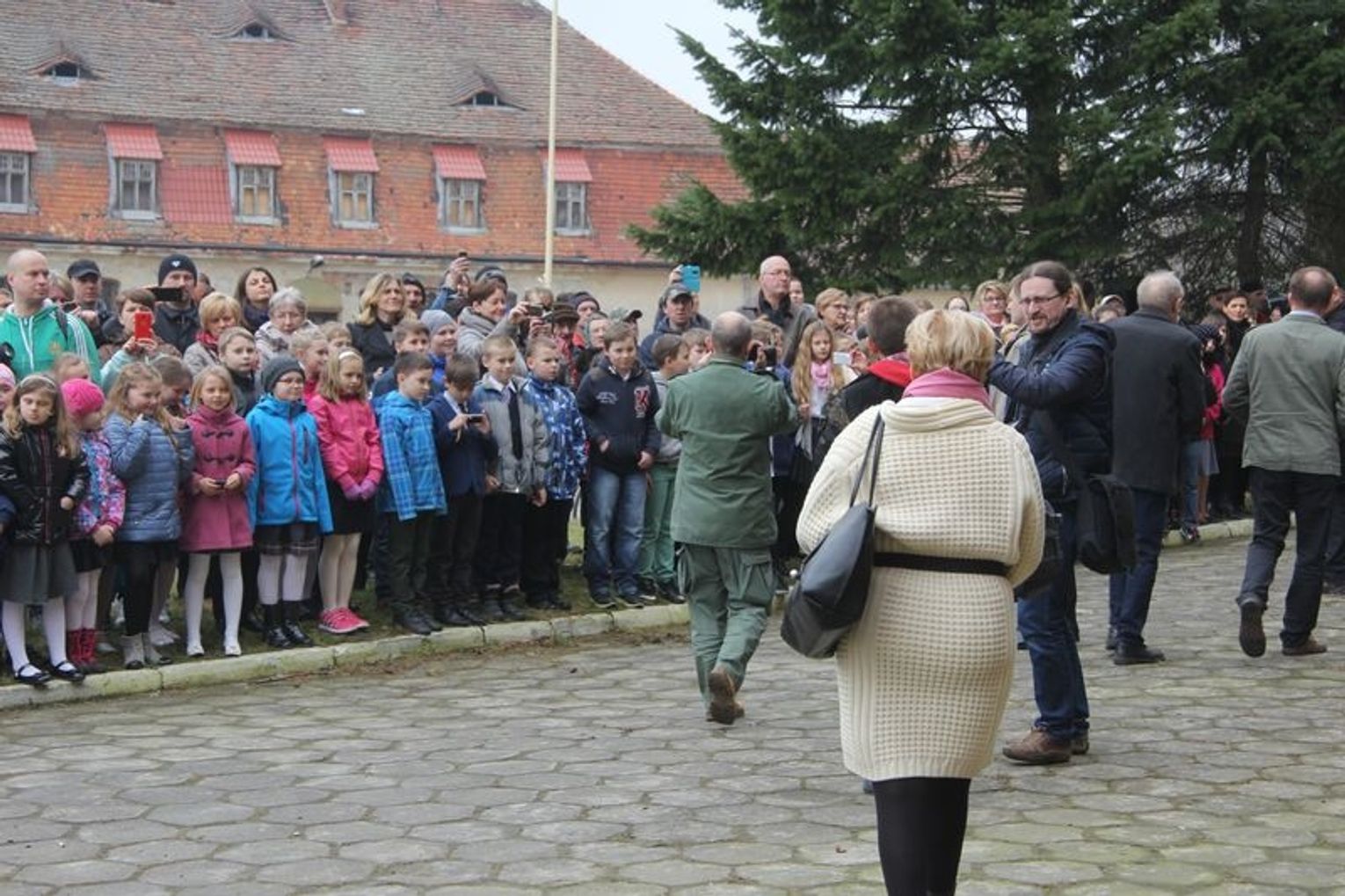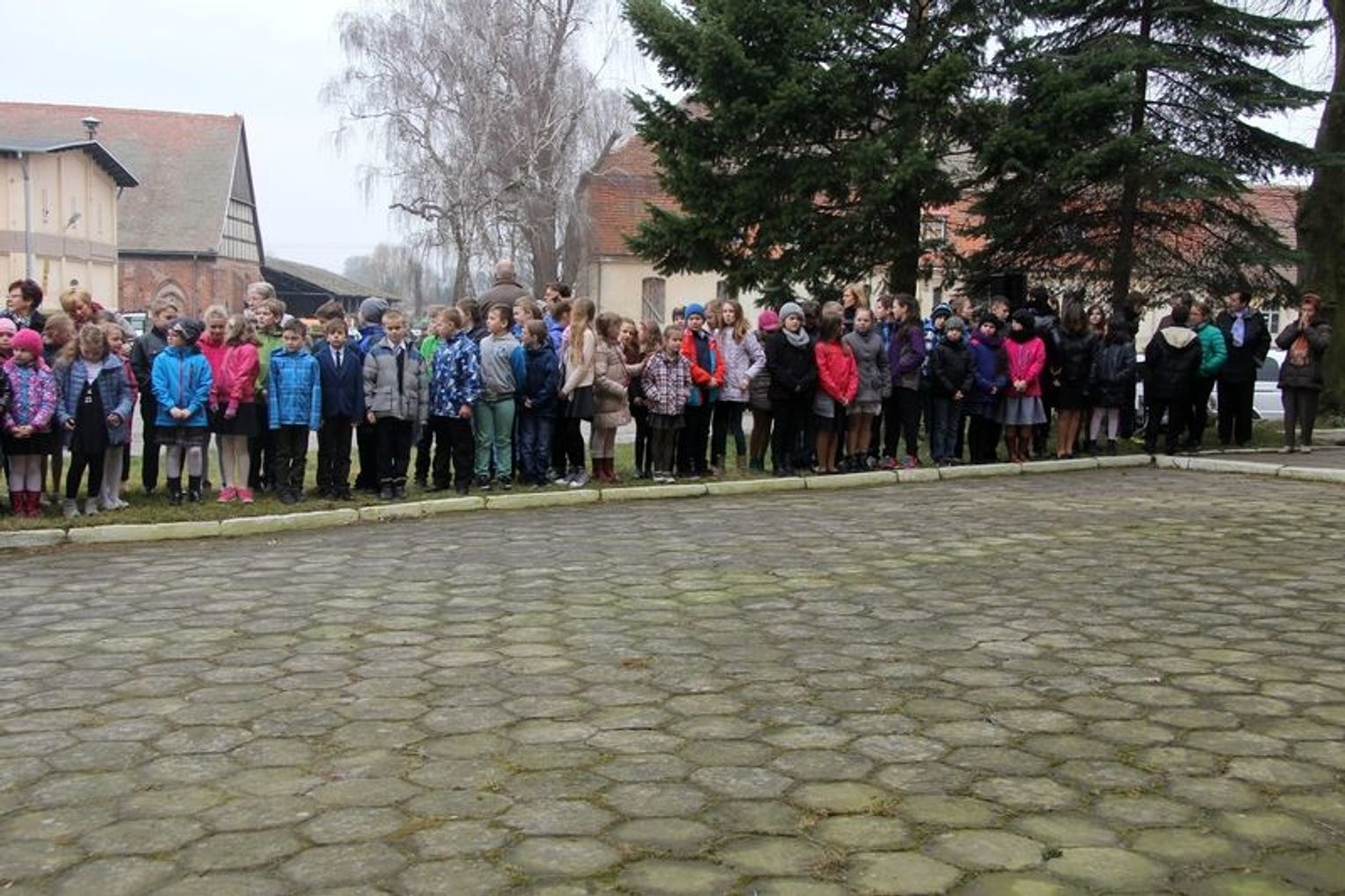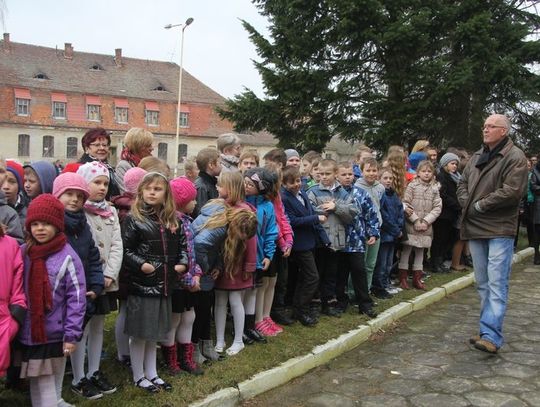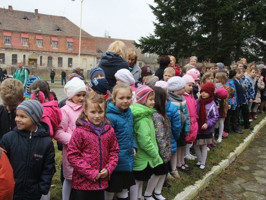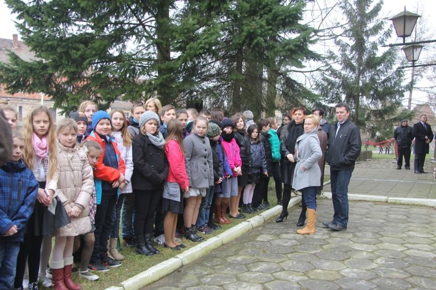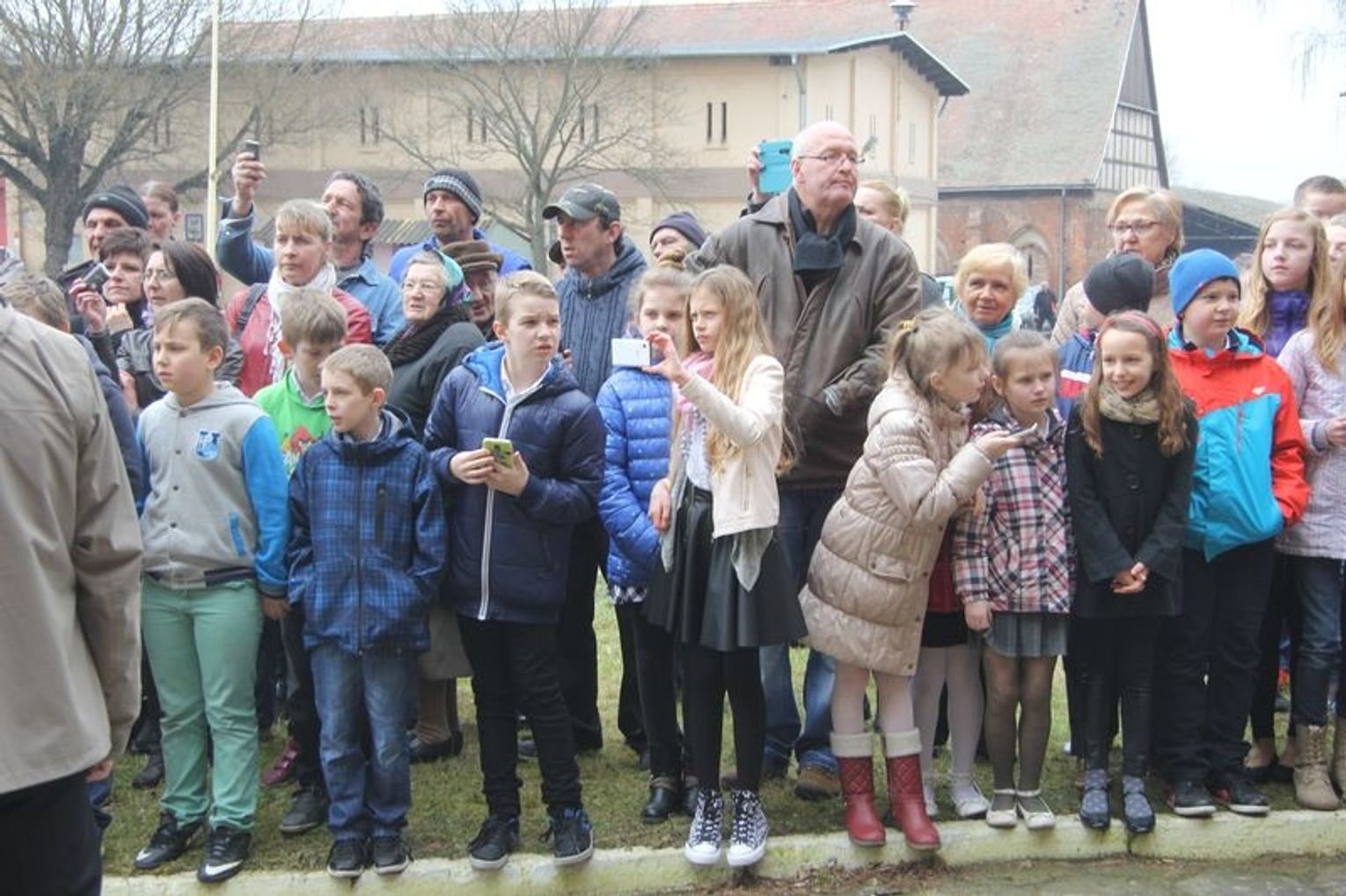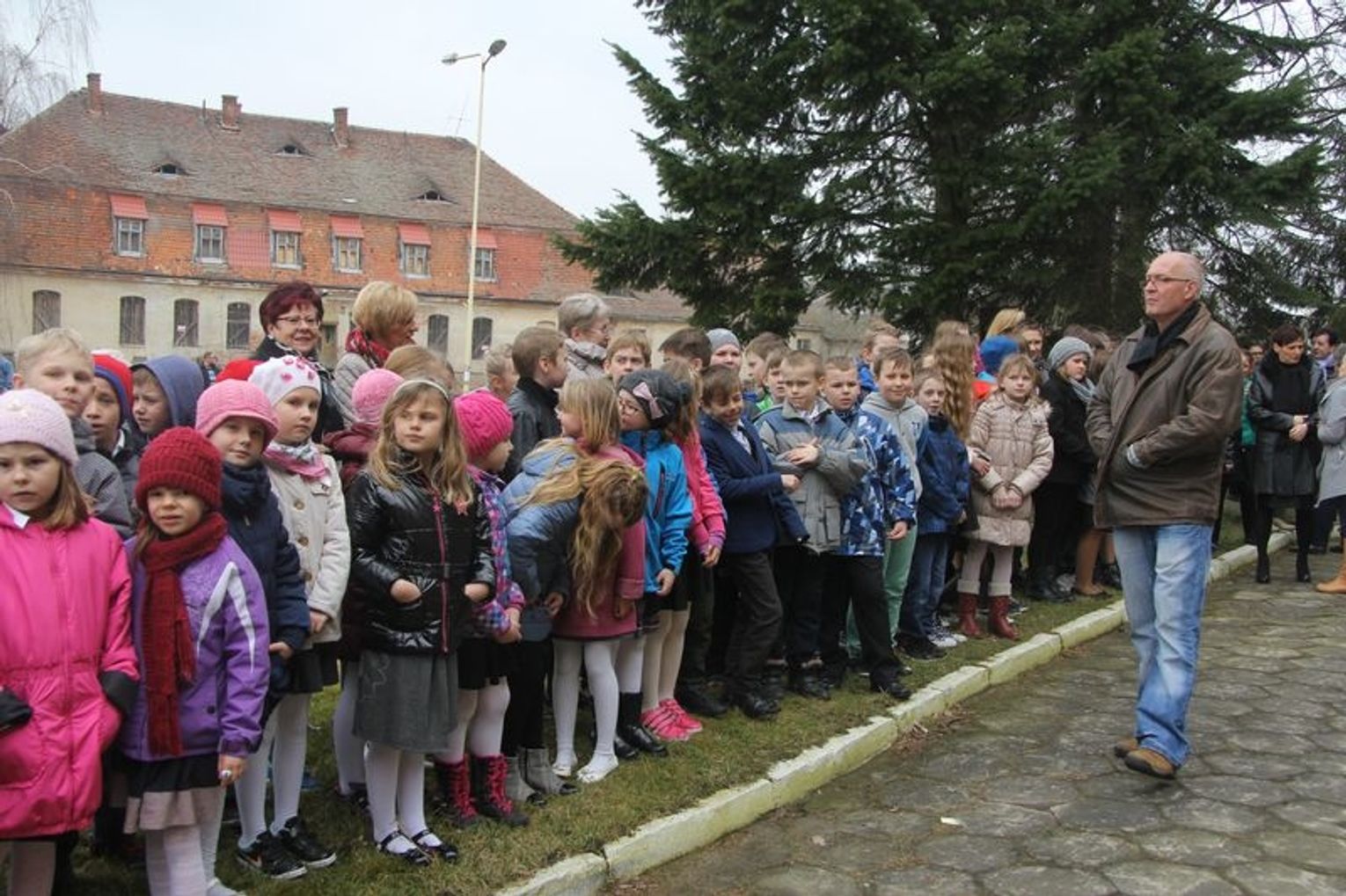 Ów prezent dobrze widać na jednym ze zdjęć w bogatej fotogalerii. Zobaczymy w niej mnóstwo ludzi. Głównie to dzieci i młodzież szkolna z Zespołu Szkół w Kołbaczu (jedyna szkoła w gminie).