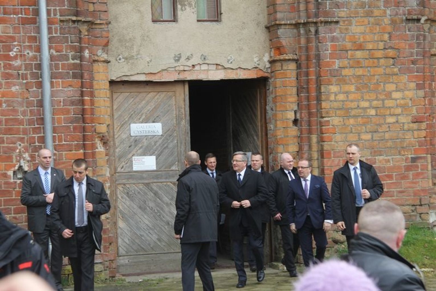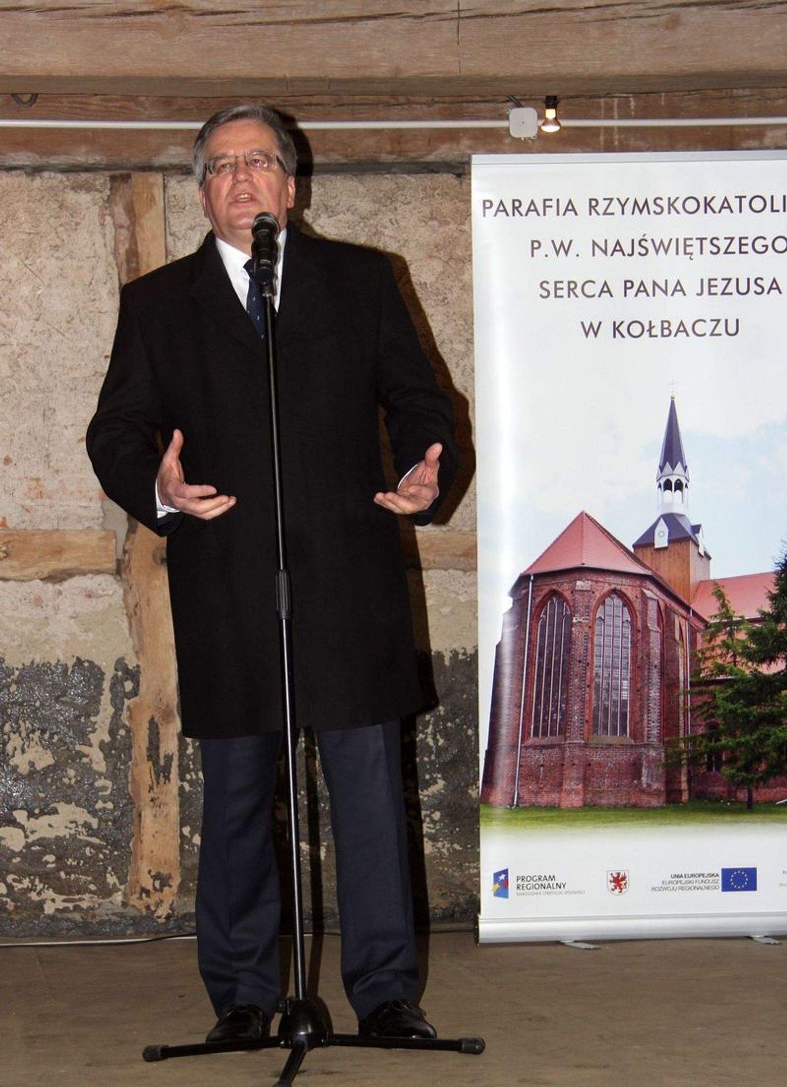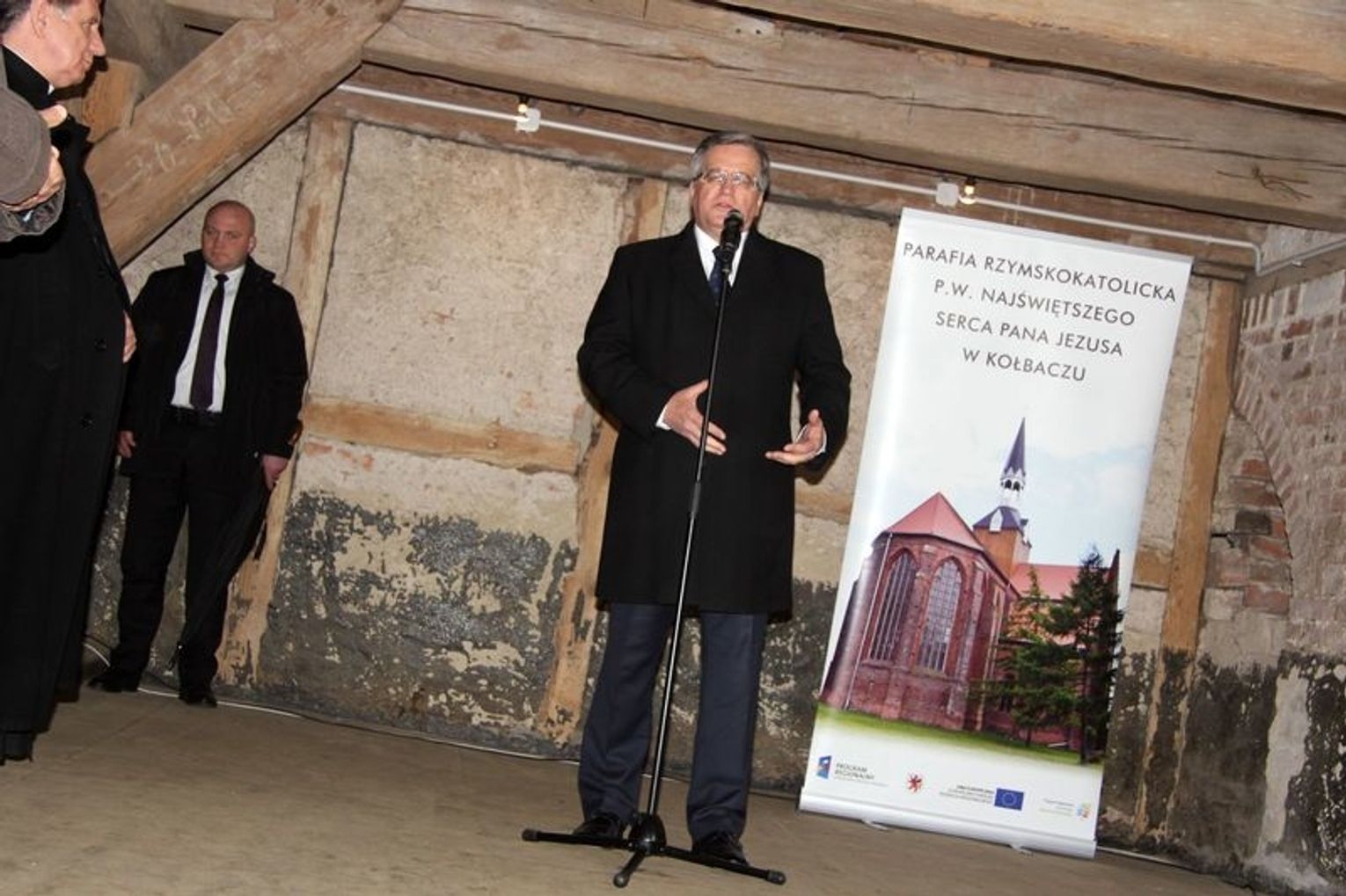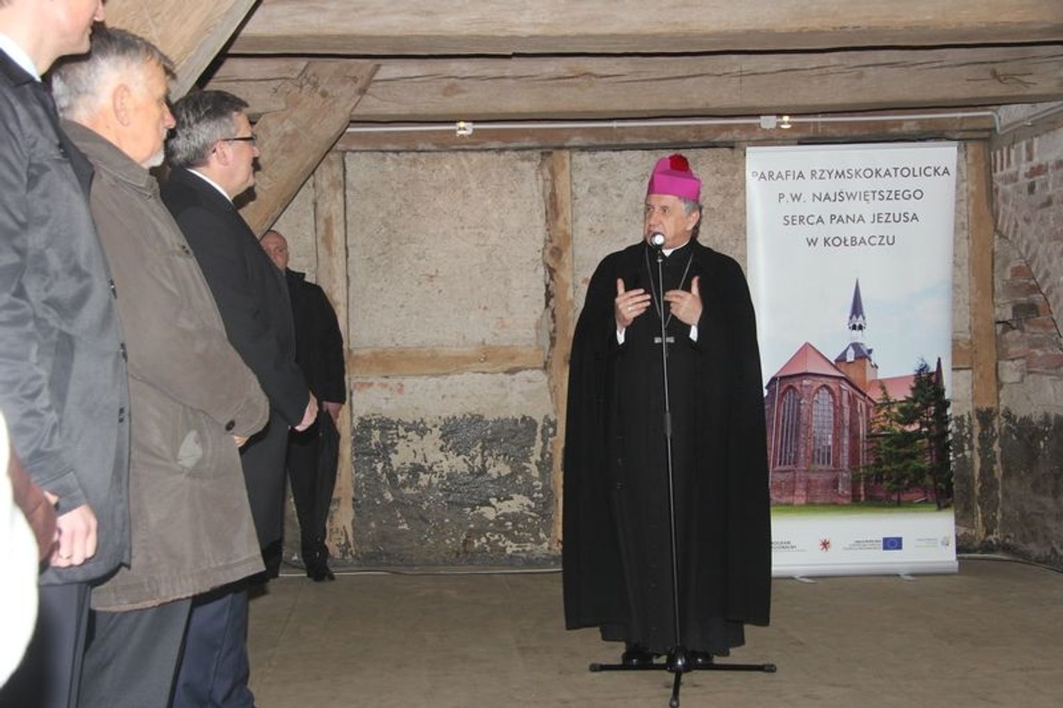 Najpierw prezydent Bronisław Komorowski pojawił się w galerii cysterskiej, wchodząc na poddasze po stromych schodach. Wszedł, rozejrzał się i widać było, że spodobało mu się skromne, historyczne wnętrze. Po tym jak pochwalił się wiedzą o cystersach, wezwał mieszkańców do starania się o odnowienie perełki architektonicznej i czerpania z tego wszelakich zysków. Restaurację pomnika historii - Kołbacza porównał do innego pomnika – Łowicza. Arcybiskup Andrzej Dzięga zażartował, że oba miejsca mają tyle samo liter w nazwie, jednak Kołbacz jest wcześniej w alfabecie…