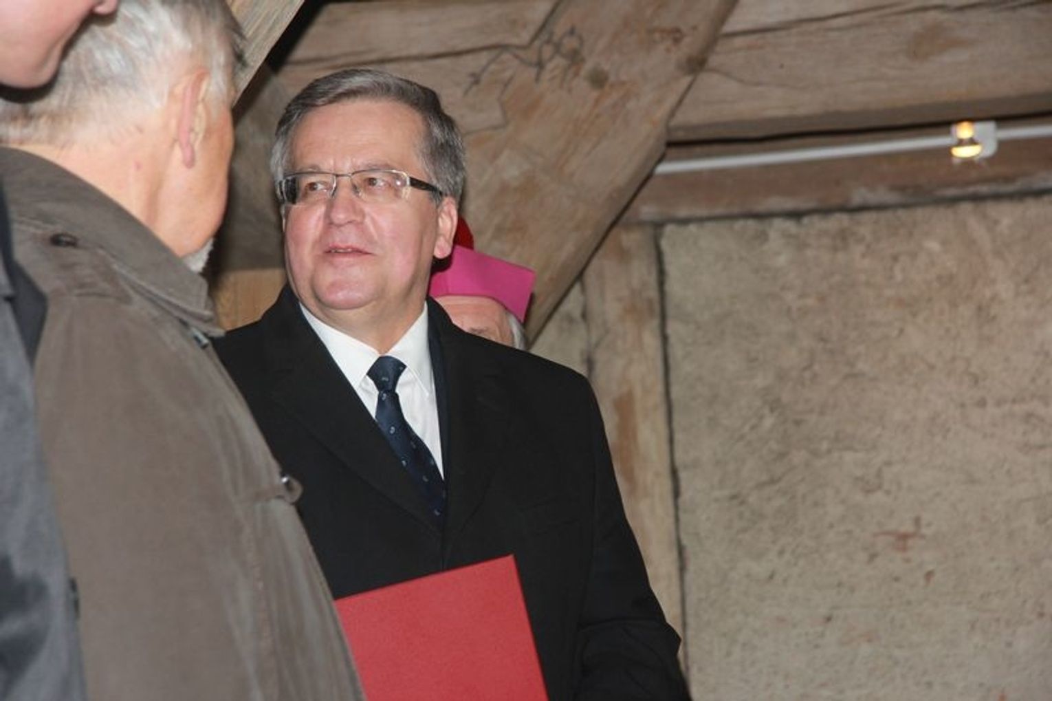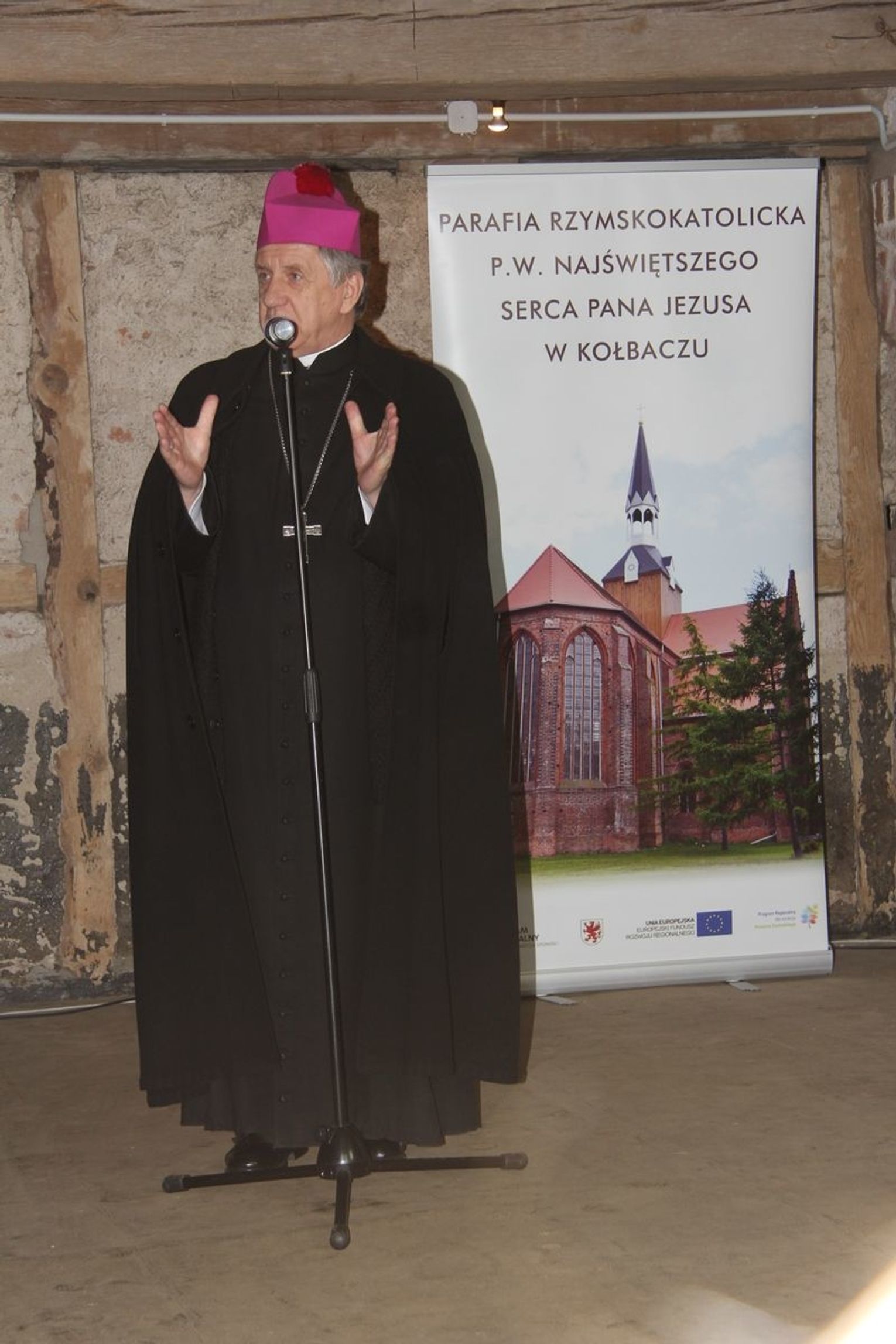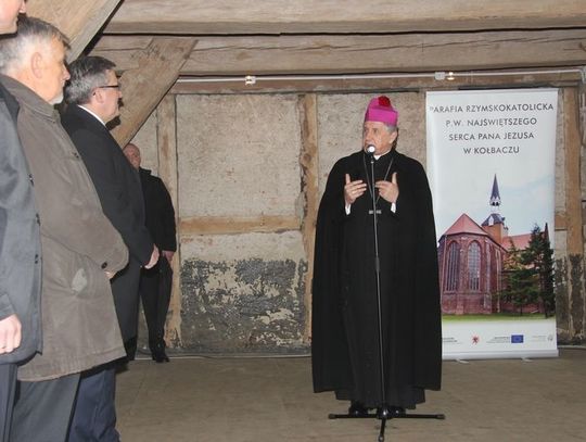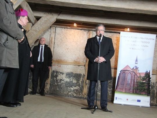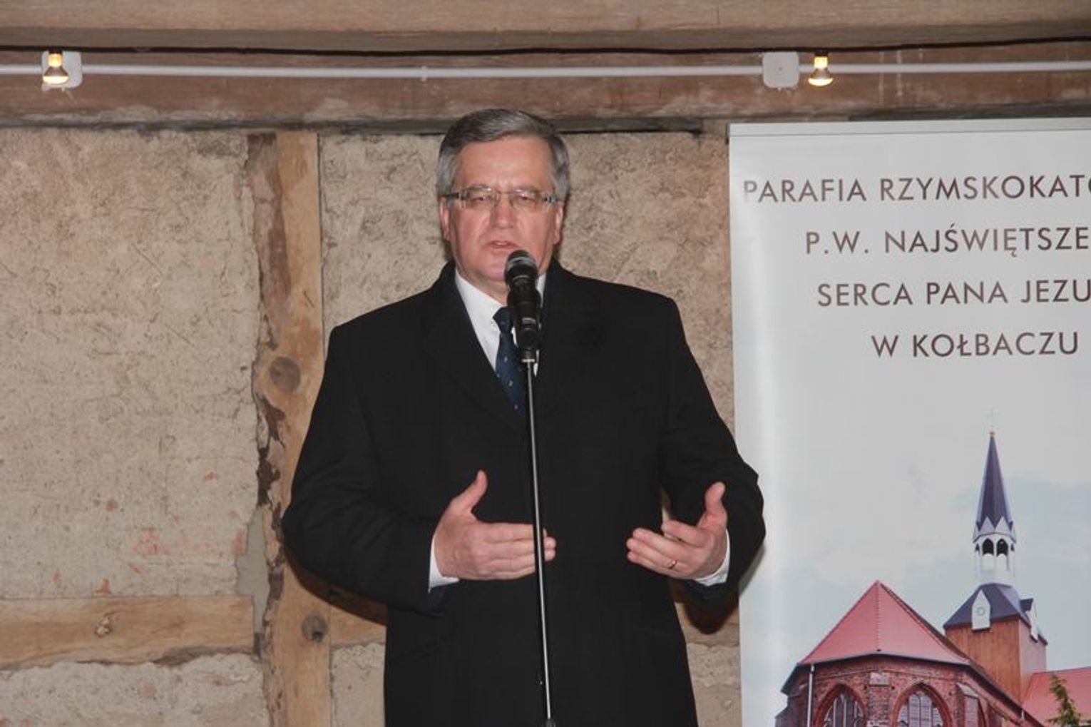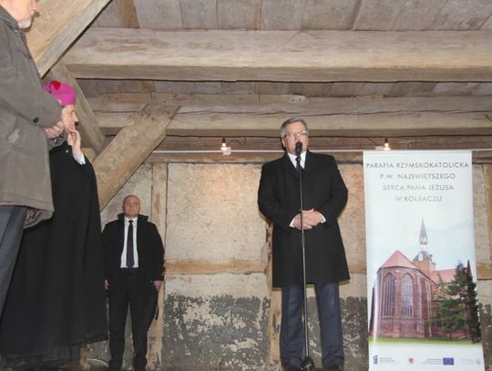 Najpierw prezydent Bronisław Komorowski pojawił się w galerii cysterskiej, wchodząc na poddasze po stromych schodach. Wszedł, rozejrzał się i widać było, że spodobało mu się skromne, historyczne wnętrze. Po tym jak pochwalił się wiedzą o cystersach, wezwał mieszkańców do starania się o odnowienie perełki architektonicznej i czerpania z tego wszelakich zysków. Restaurację pomnika historii - Kołbacza porównał do innego pomnika – Łowicza. Arcybiskup Andrzej Dzięga zażartował, że oba miejsca mają tyle samo liter w nazwie, jednak Kołbacz jest wcześniej w alfabecie…