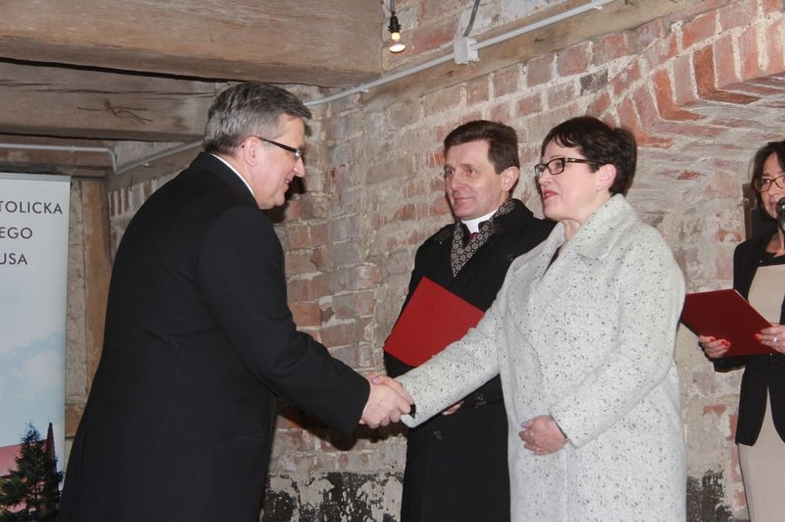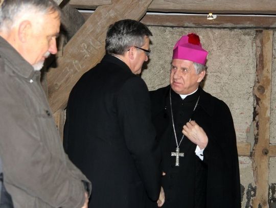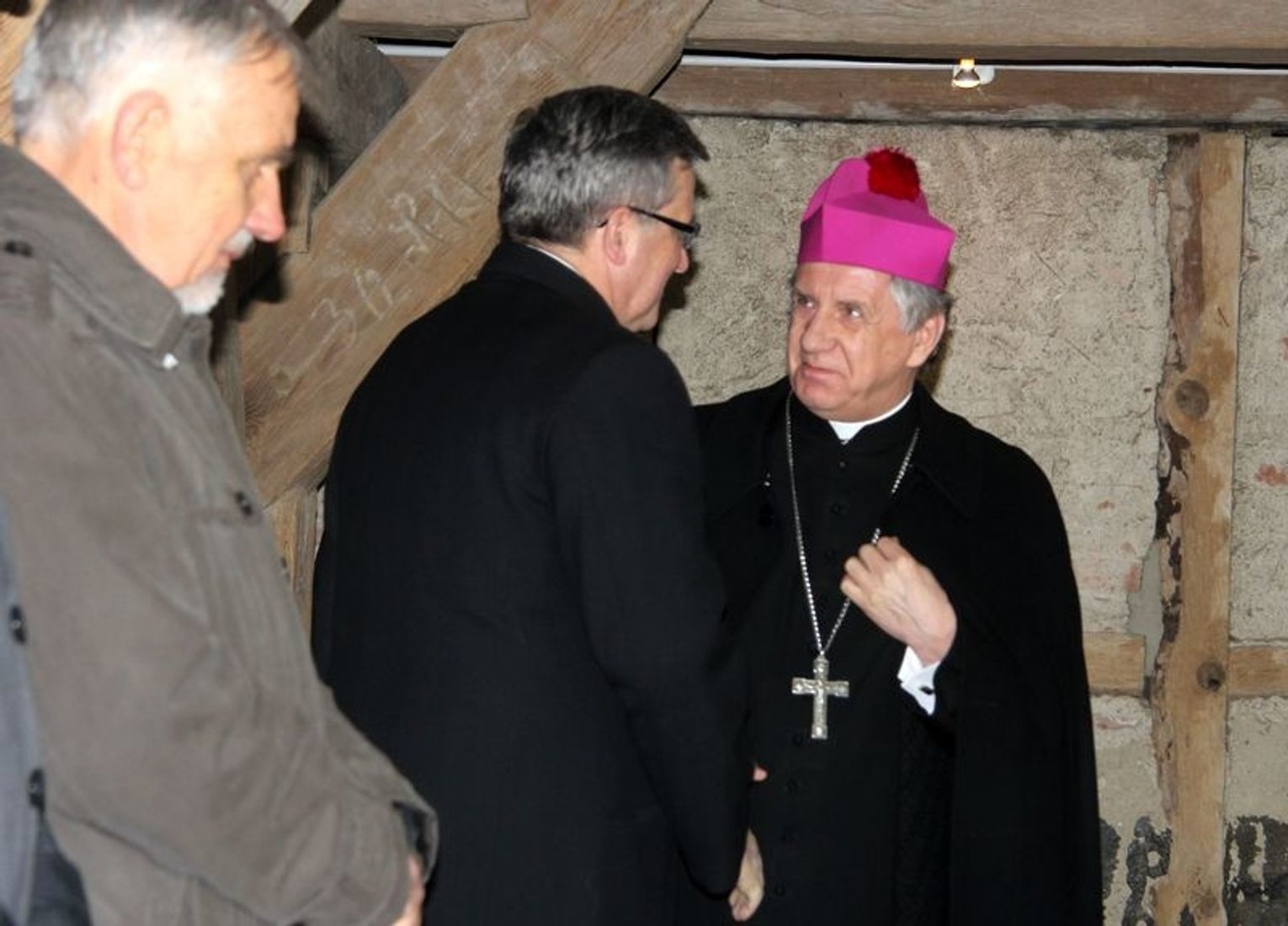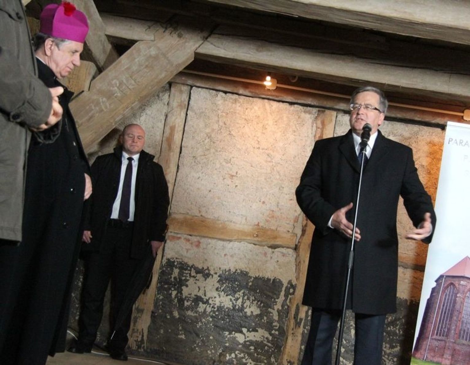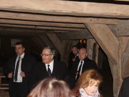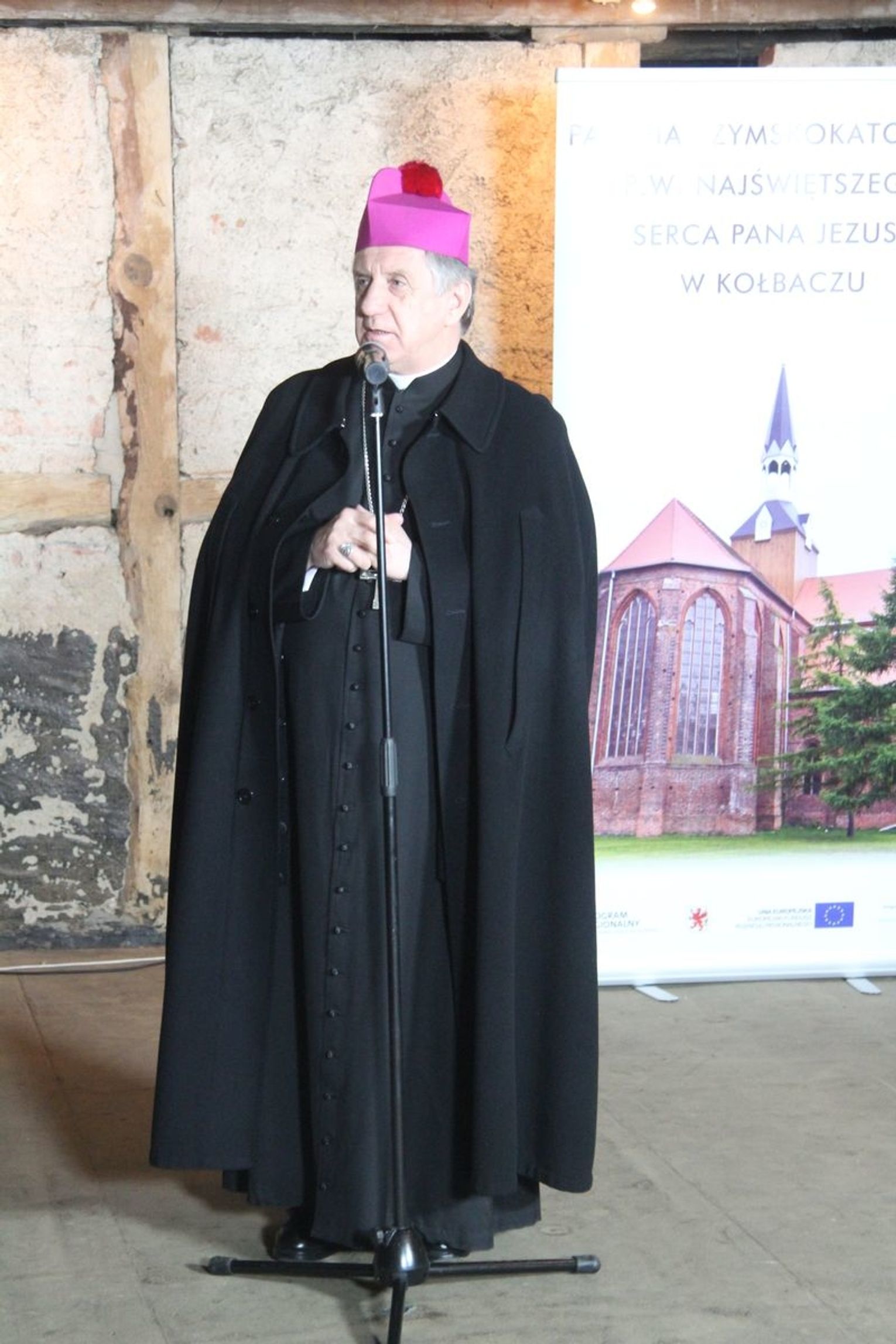 Najpierw prezydent Bronisław Komorowski pojawił się w galerii cysterskiej, wchodząc na poddasze po stromych schodach. Wszedł, rozejrzał się i widać było, że spodobało mu się skromne, historyczne wnętrze. Po tym jak pochwalił się wiedzą o cystersach, wezwał mieszkańców do starania się o odnowienie perełki architektonicznej i czerpania z tego wszelakich zysków. Restaurację pomnika historii - Kołbacza porównał do innego pomnika – Łowicza. Arcybiskup Andrzej Dzięga zażartował, że oba miejsca mają tyle samo liter w nazwie, jednak Kołbacz jest wcześniej w alfabecie…