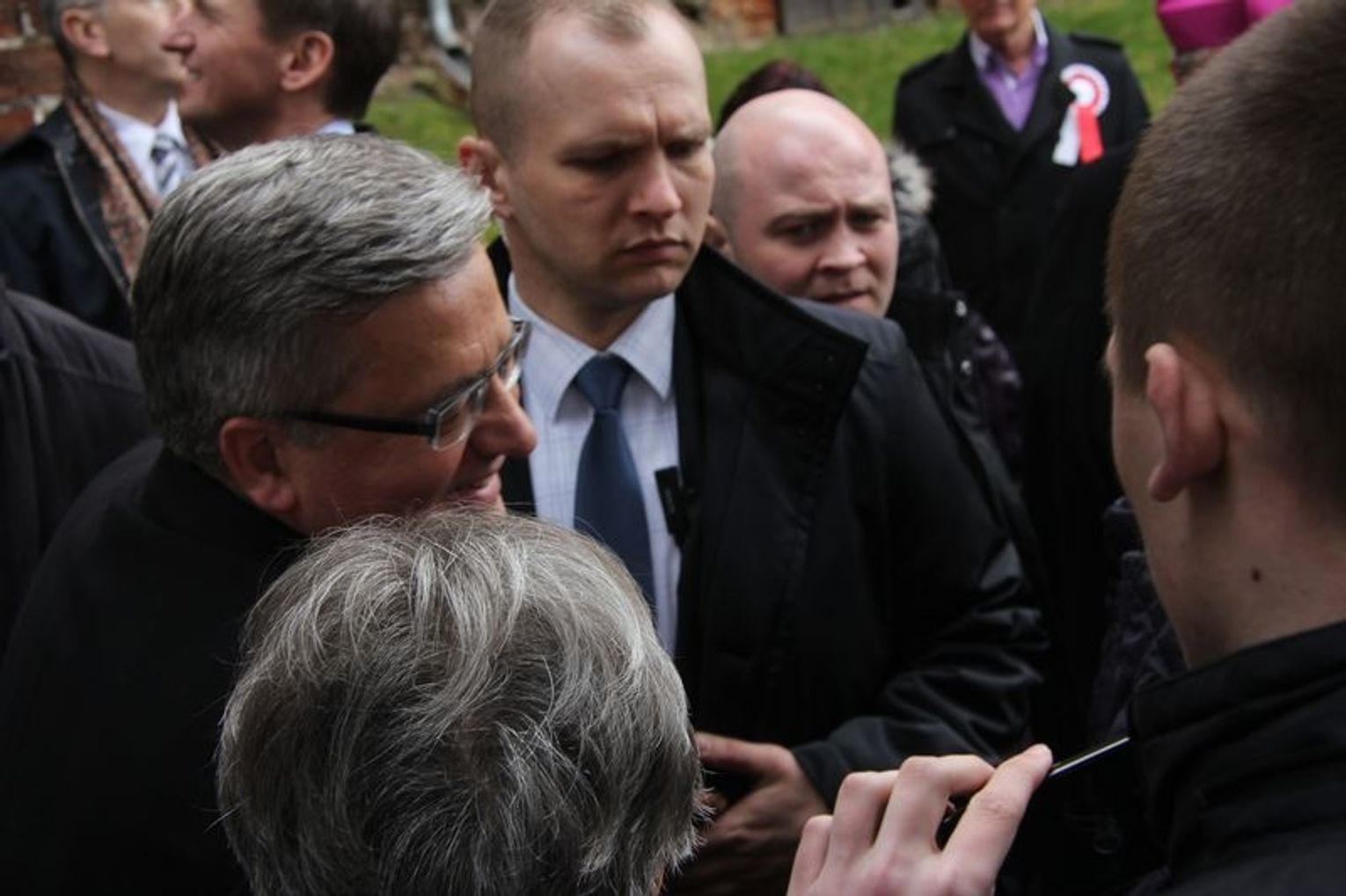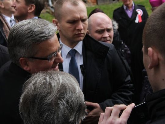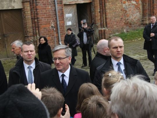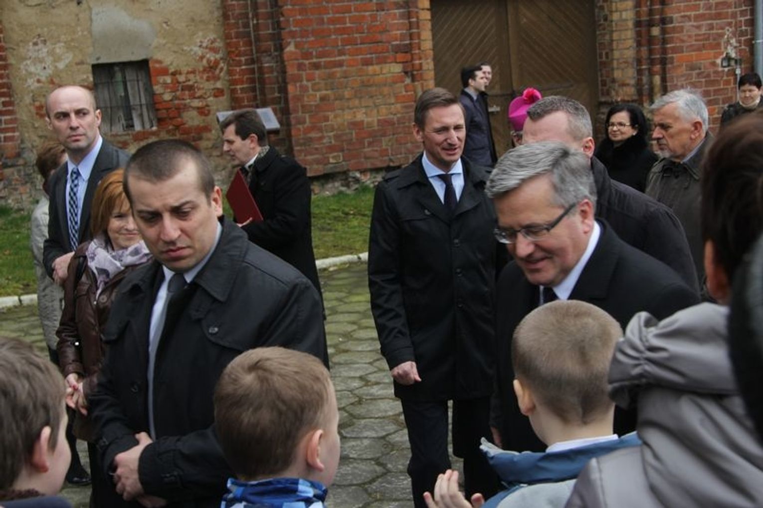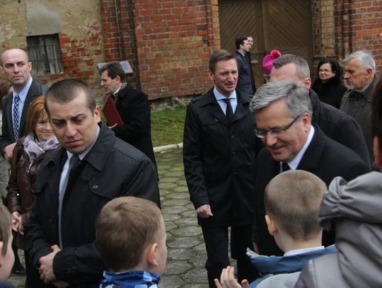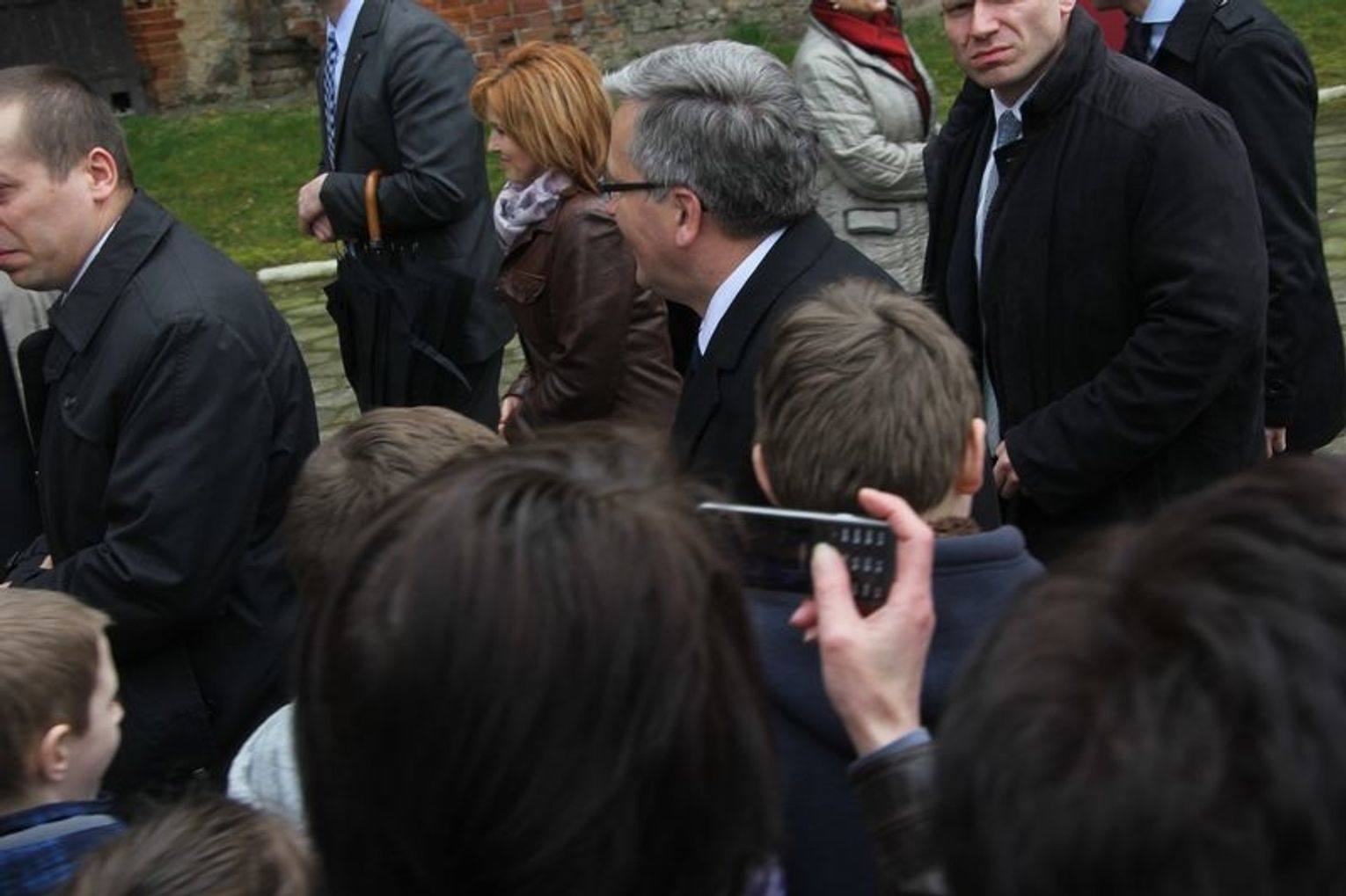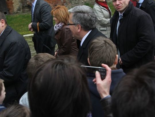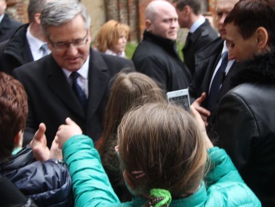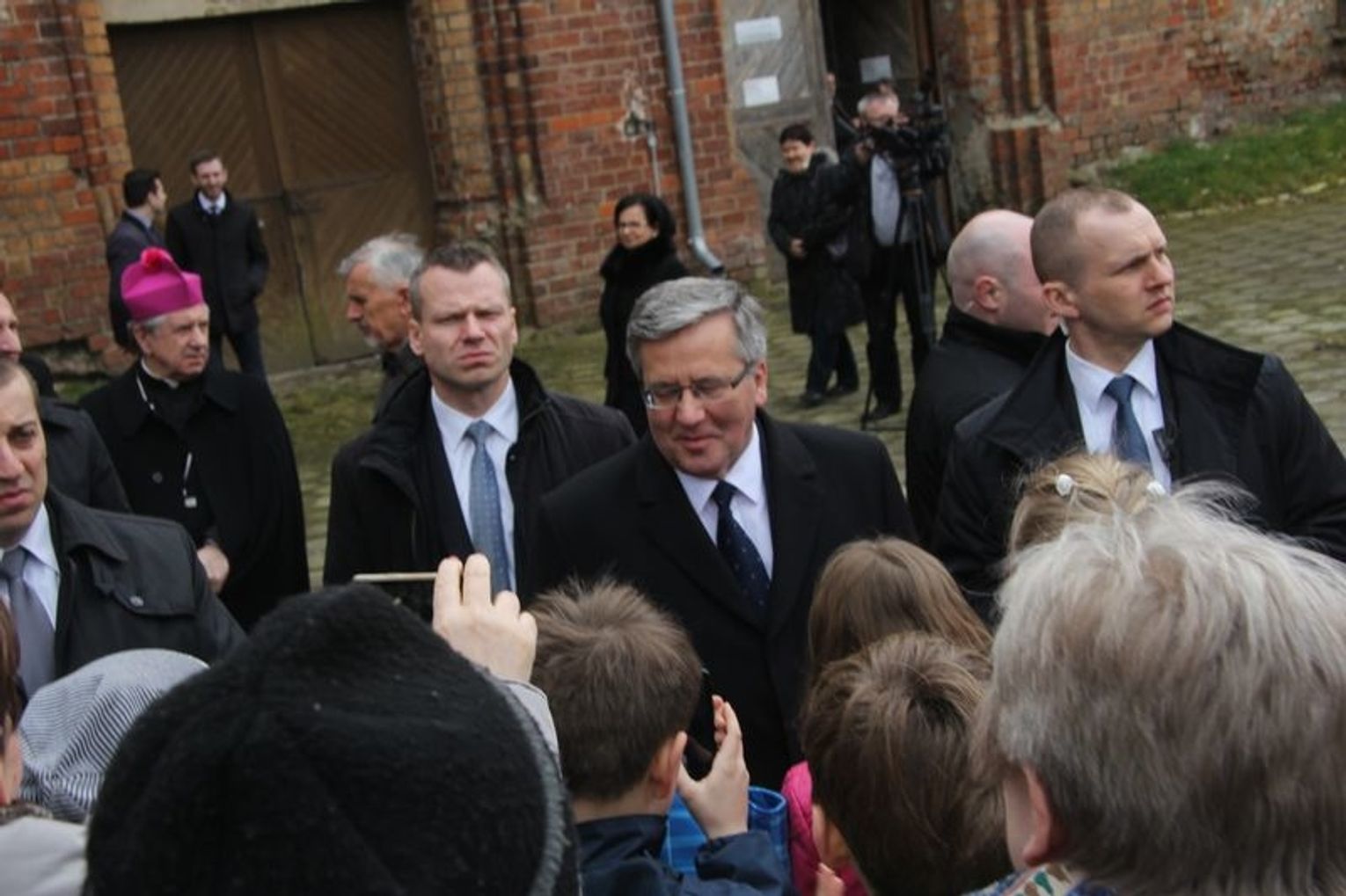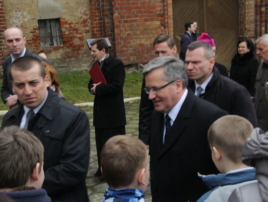 Po wyjściu z obiektu prezydent witał się z mieszkańcami. Najpierw był szpaler dzieciaków, które chętnie komórkami robiły zdjęcia głowie państwa, chwaląc się potem w szkole i w domach. Gdy jeden z mieszkańców zwrócił uwagę, że prezydent wita się głównie z kobietami, Bronisław Komorowski odwrócił się, zawrócił i podszedł podać rękę rozmówcy.