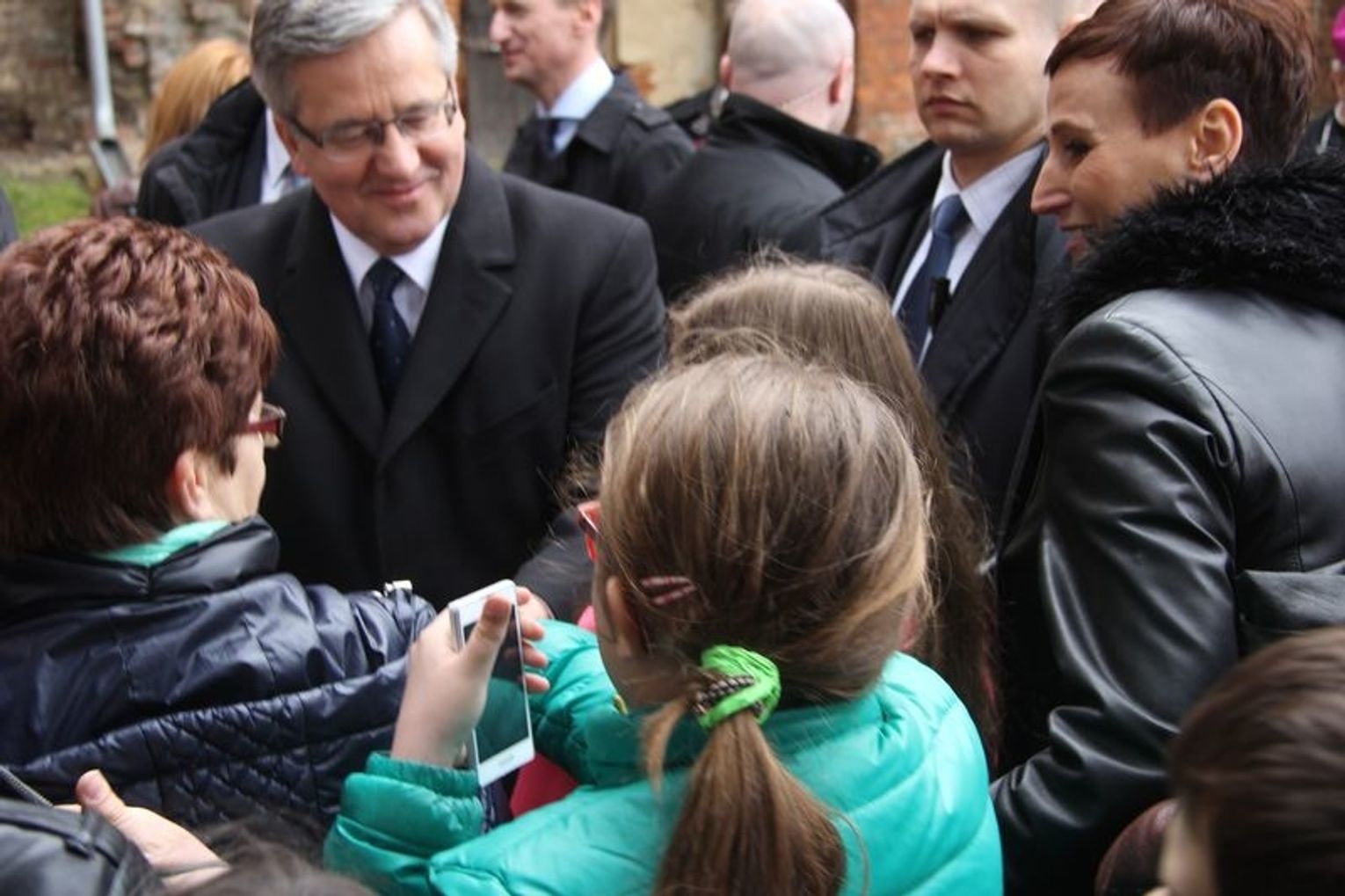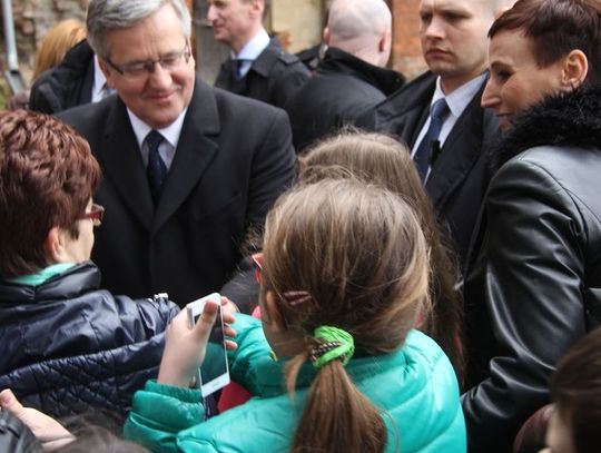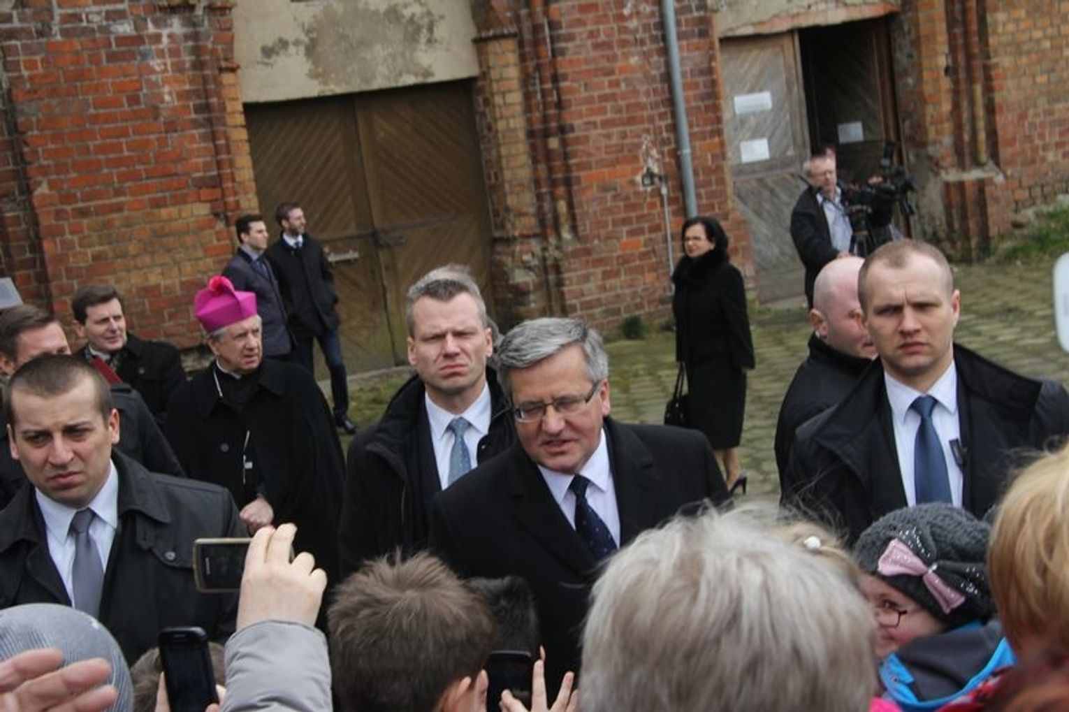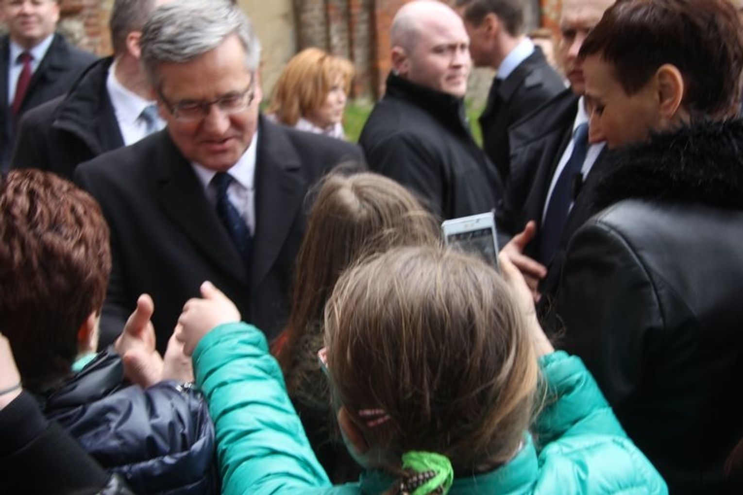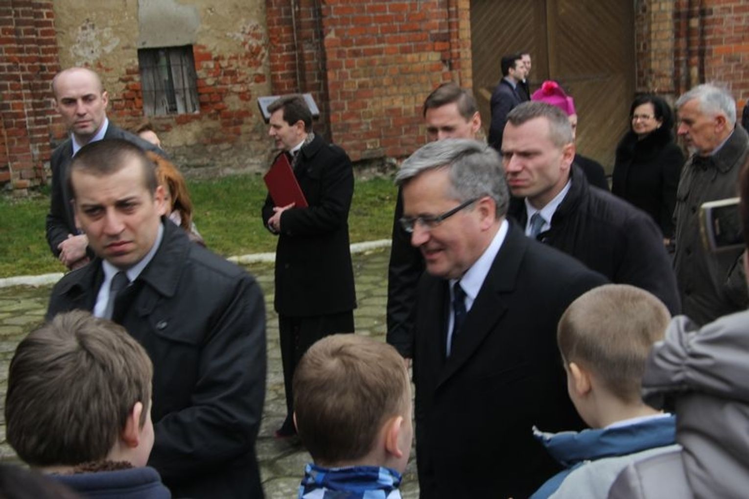 Po wyjściu z obiektu prezydent witał się z mieszkańcami. Najpierw był szpaler dzieciaków, które chętnie komórkami robiły zdjęcia głowie państwa, chwaląc się potem w szkole i w domach. Gdy jeden z mieszkańców zwrócił uwagę, że prezydent wita się głównie z kobietami, Bronisław Komorowski odwrócił się, zawrócił i podszedł podać rękę rozmówcy.
