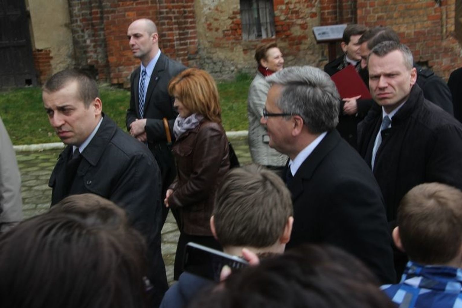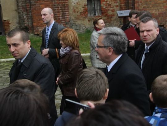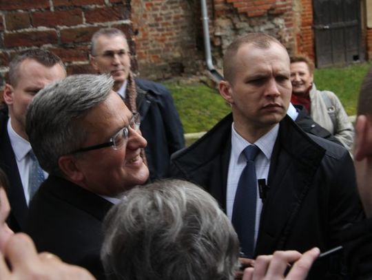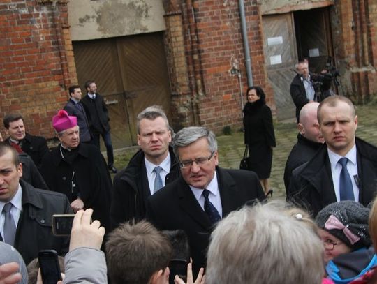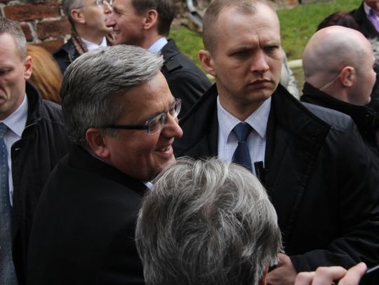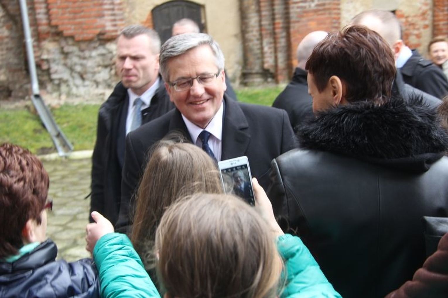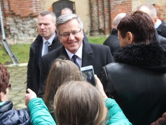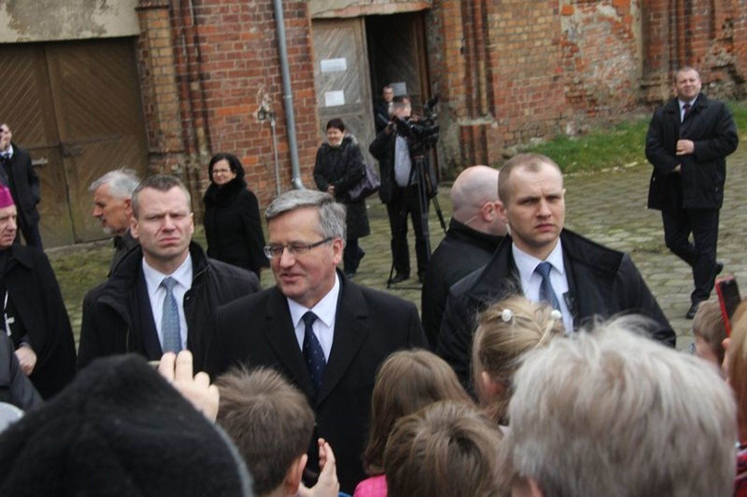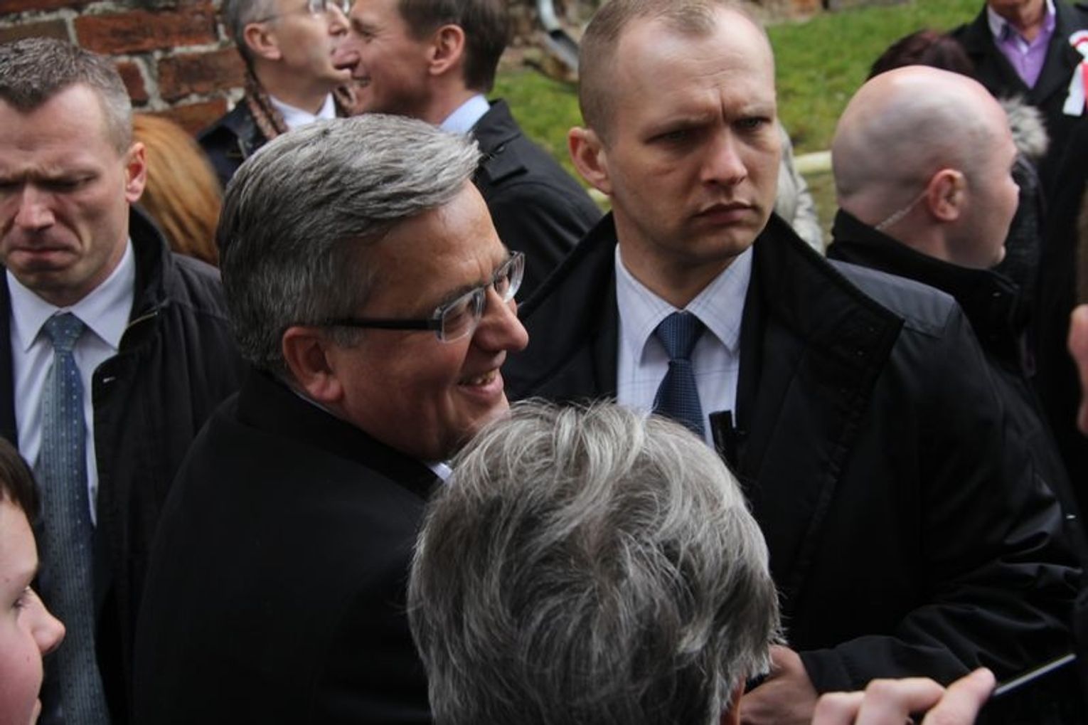 Po wyjściu z obiektu prezydent witał się z mieszkańcami. Najpierw był szpaler dzieciaków, które chętnie komórkami robiły zdjęcia głowie państwa, chwaląc się potem w szkole i w domach. Gdy jeden z mieszkańców zwrócił uwagę, że prezydent wita się głównie z kobietami, Bronisław Komorowski odwrócił się, zawrócił i podszedł podać rękę rozmówcy.