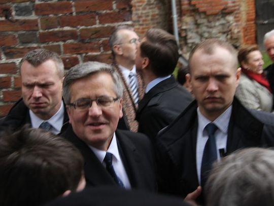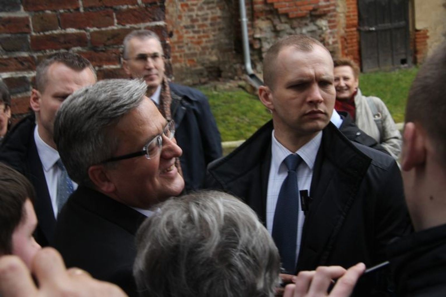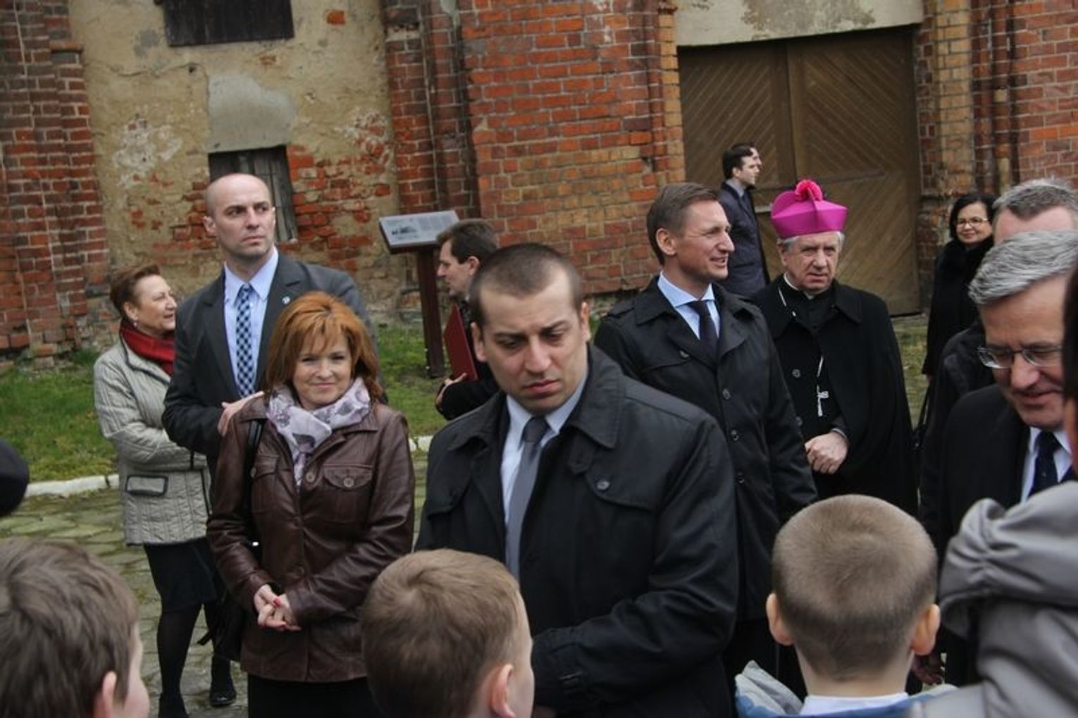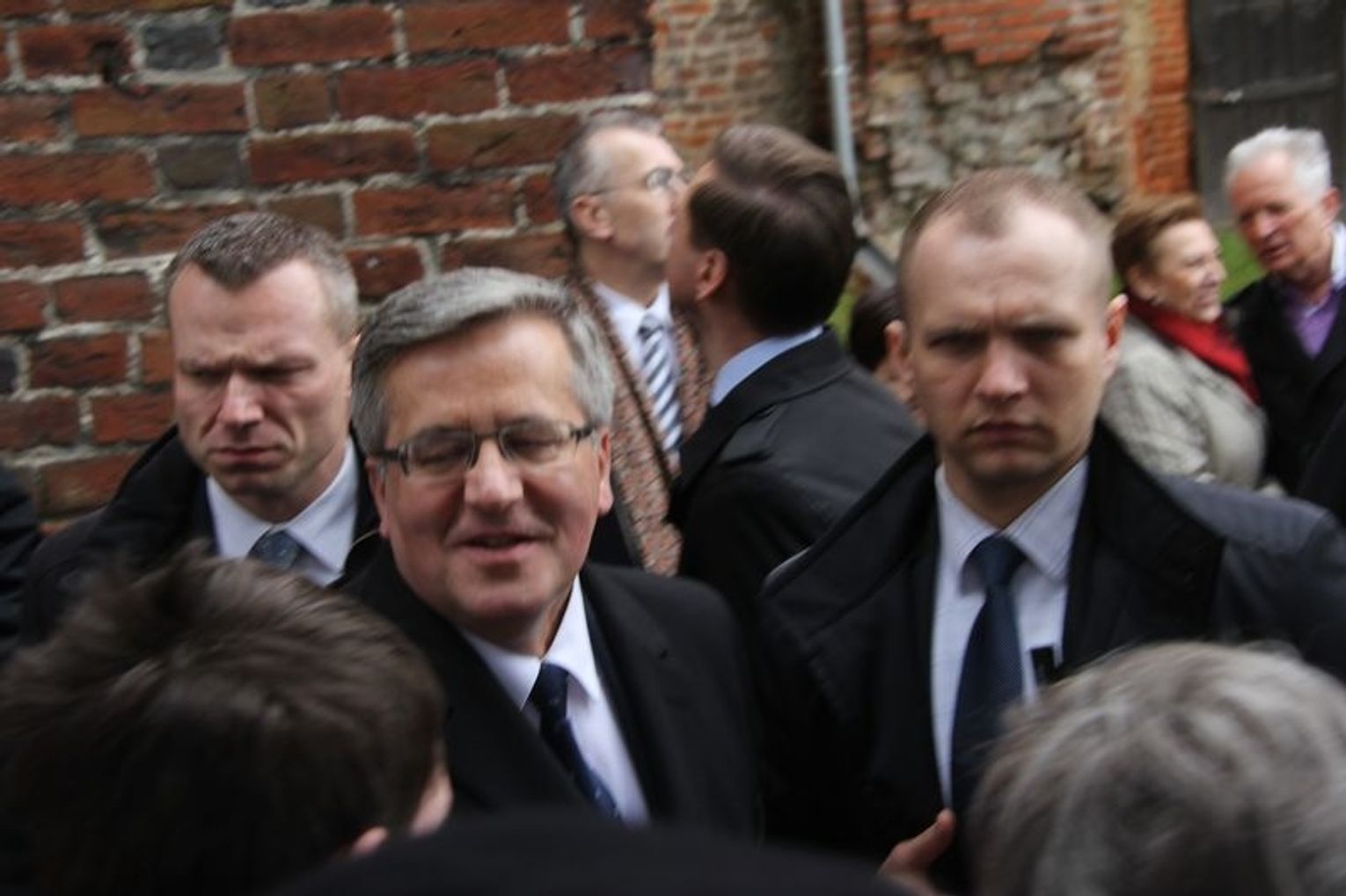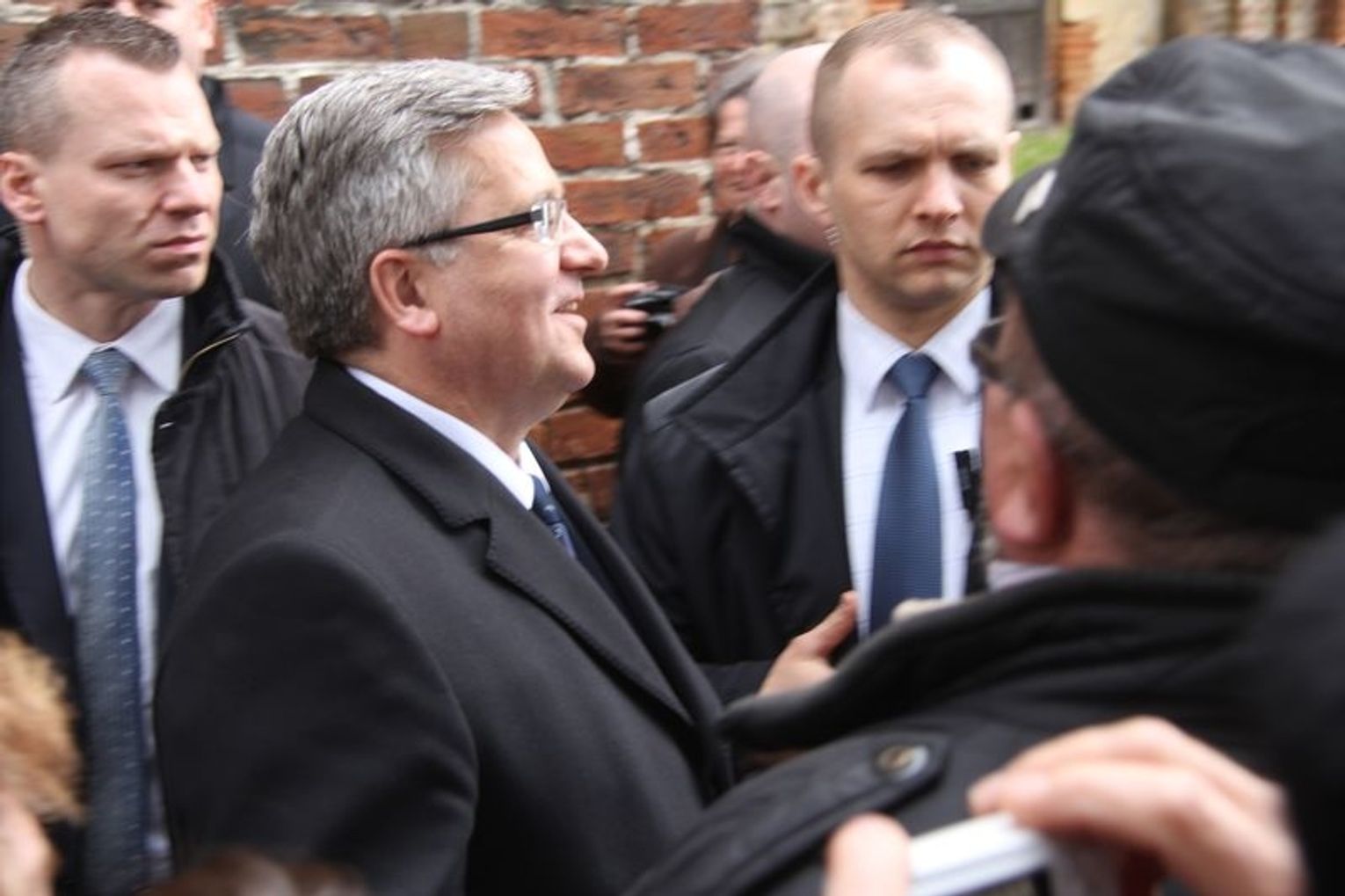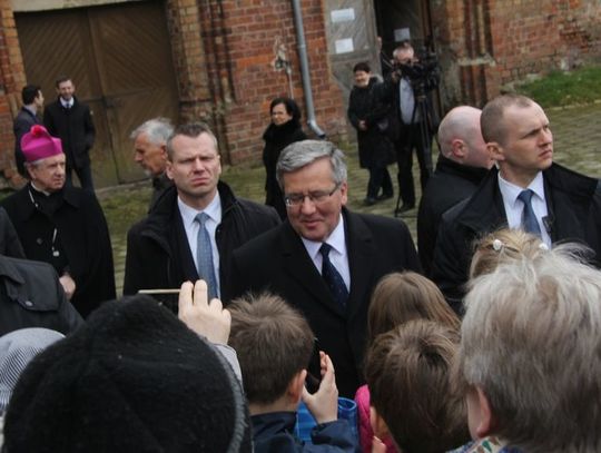 Po wyjściu z obiektu prezydent witał się z mieszkańcami. Najpierw był szpaler dzieciaków, które chętnie komórkami robiły zdjęcia głowie państwa, chwaląc się potem w szkole i w domach. Gdy jeden z mieszkańców zwrócił uwagę, że prezydent wita się głównie z kobietami, Bronisław Komorowski odwrócił się, zawrócił i podszedł podać rękę rozmówcy.