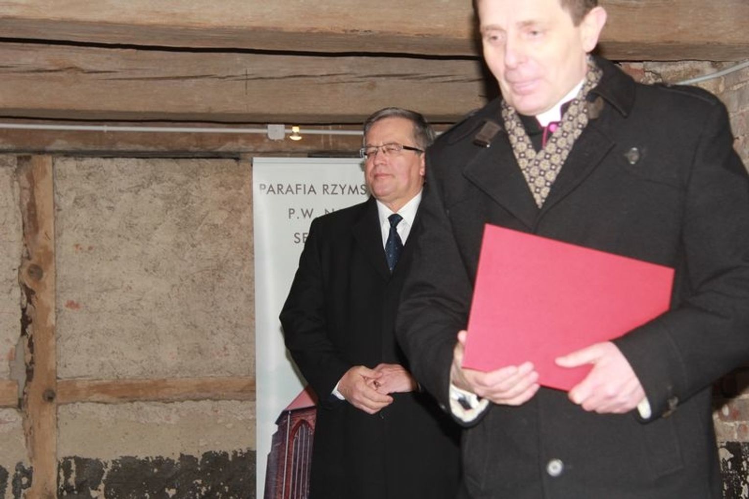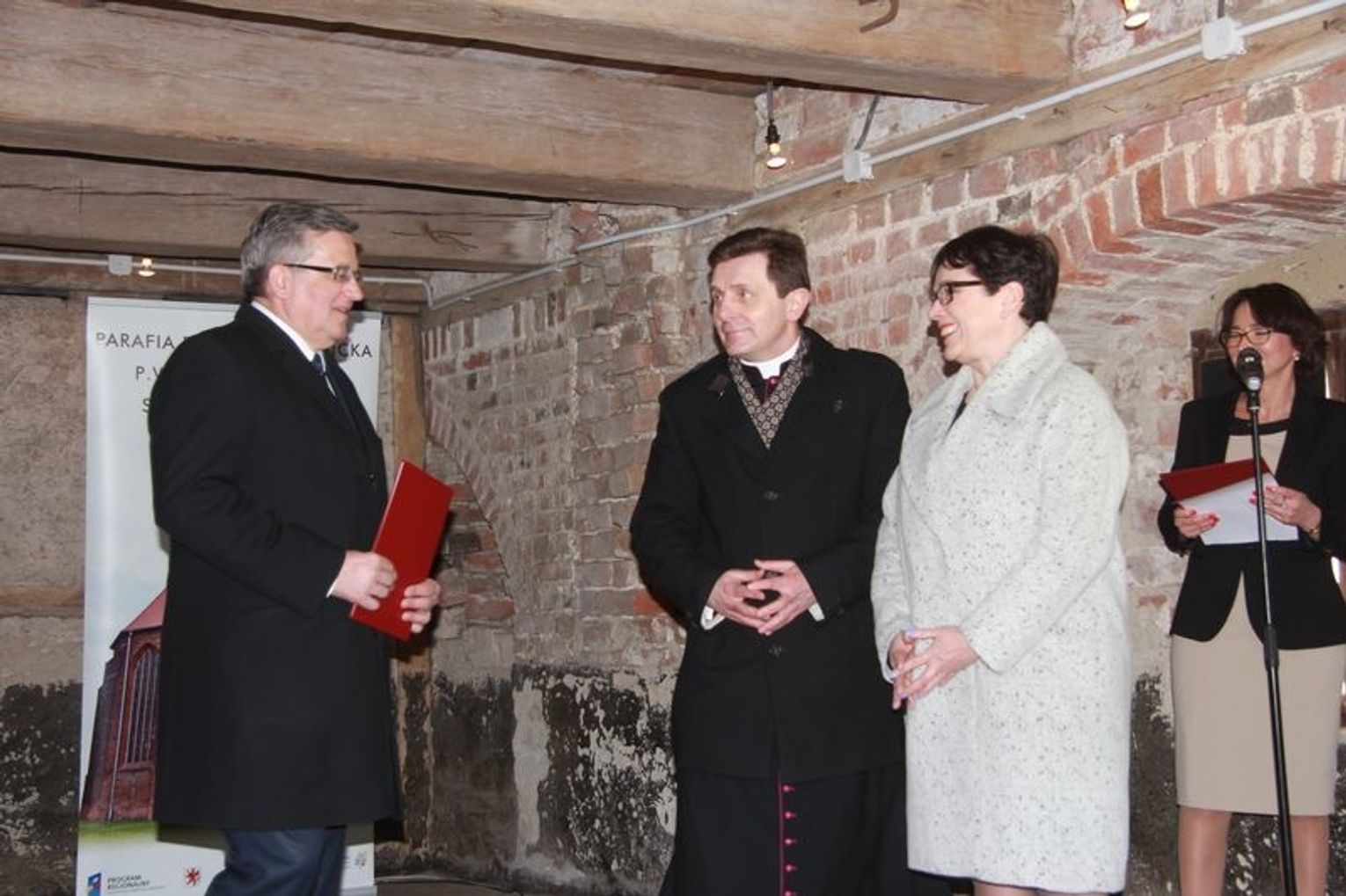 Następnie prezydent wszedł do kościoła. Tu wpisał się do księgi pamiątkowej: „Cieszę się, że mogłem wpisać kościół pw. Najświętszego Serca Pana Jezusa na elitarną listę Pomników Historii - najcenniejszych zabytków Rzeczypospolitej. Dziękuję wszystkim osobom zaangażowanym w troskę o ten wspaniały pocysterski zespół klasztorny, który ujmuje szlachetnością gotyckiej architektury i jest prawdziwą perłą Pomorza Zachodniego”.