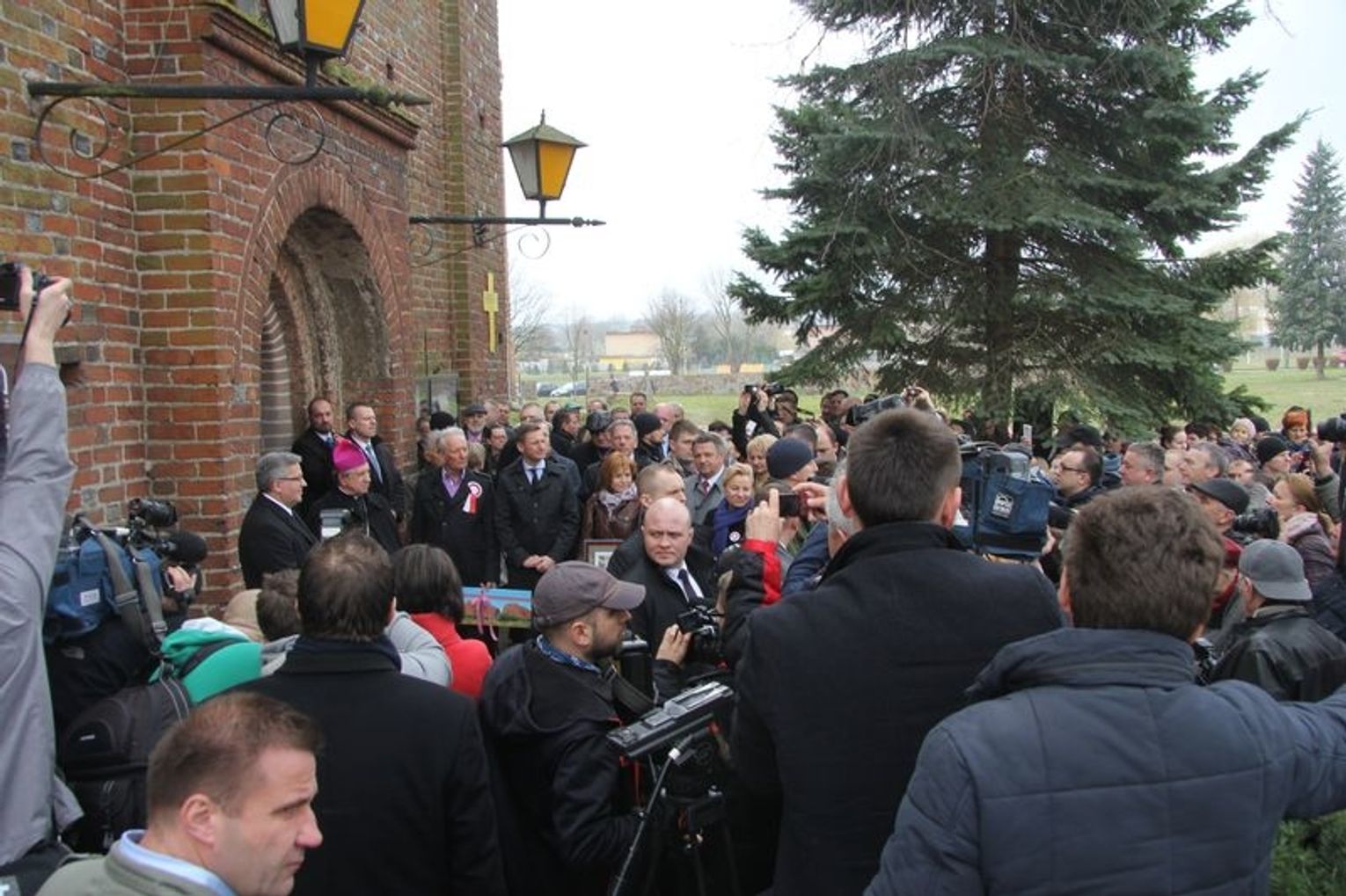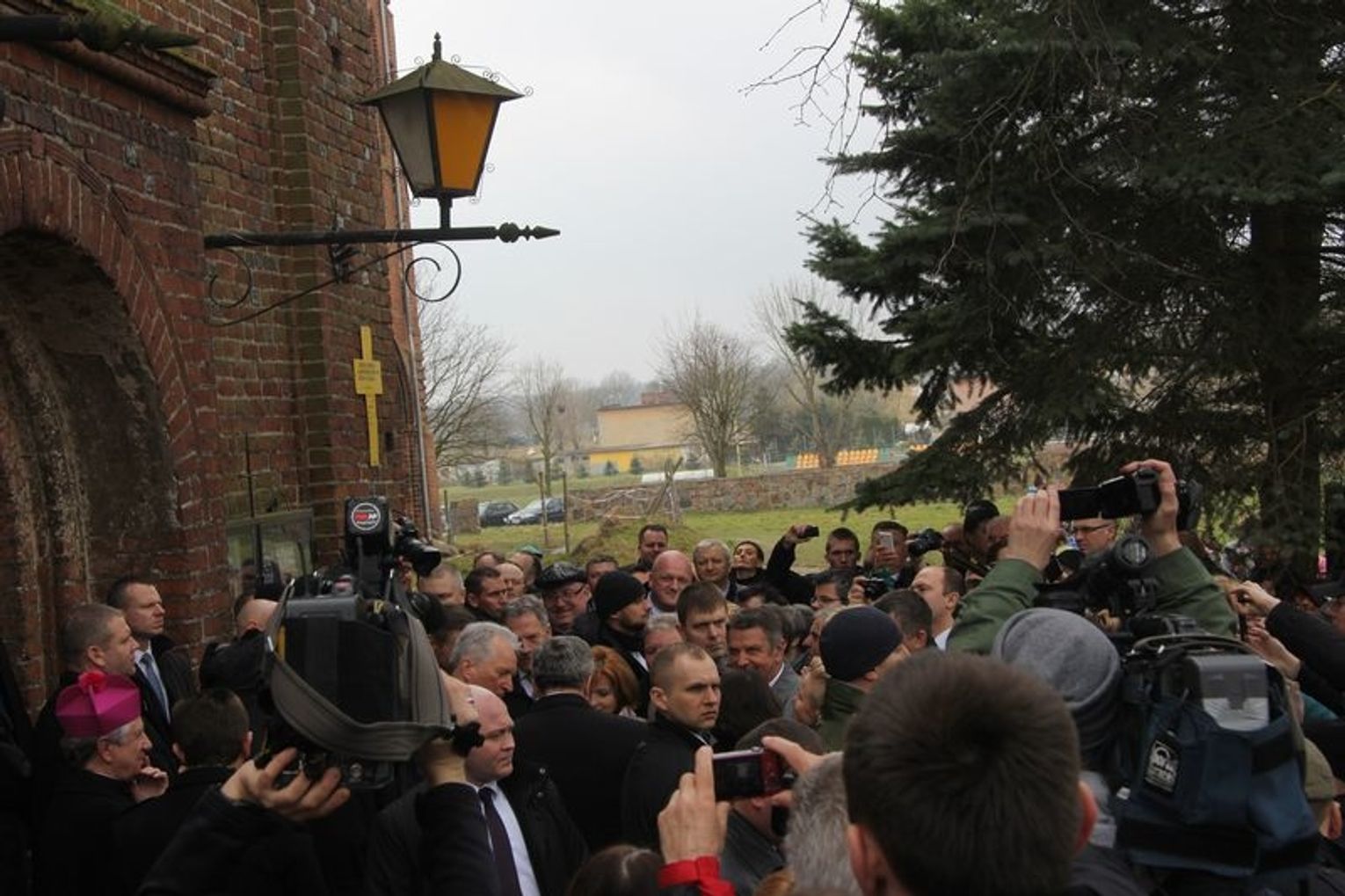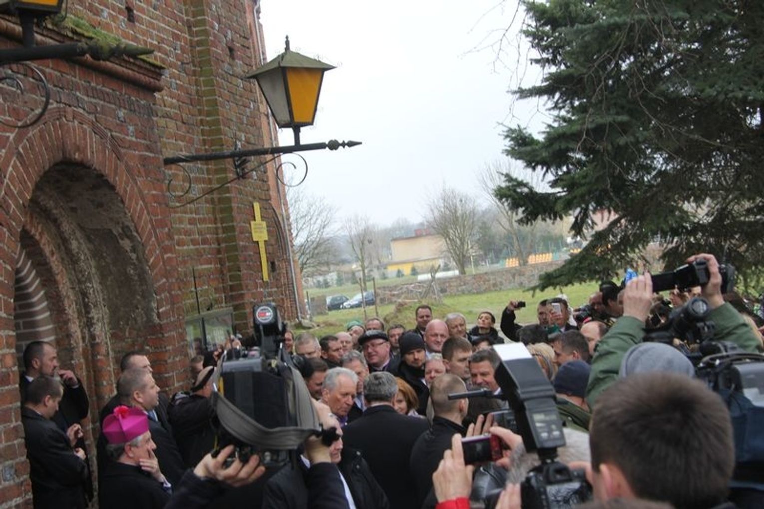 Na prezydenta czekała oflagowana grupa rolników. Wznosili okrzyki: „Polska ziemia dla polskich rolników!”. Nagle prezydent wszedł do kościoła. Tłum oczekiwał aż wyjdzie. Tymczasem tylnym wyjściem od zakrystii prezydent szybko opuścił świątynię. Wsiadł do samochodu i odjechał do Gorzowa Wielkopolskiego.