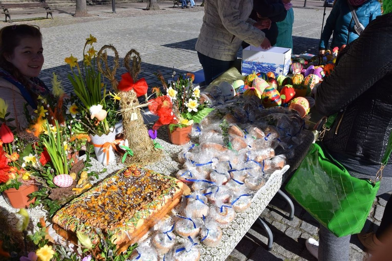 Zwiedzających jak na słoneczną, lecz mroźną pogodę, było całkiem sporo, zwłaszcza wtedy gdy szli do pobliskiego kościoła. Dziękujemy pięknie wszystkim uczestnikom jarmarku wielkanocnego.