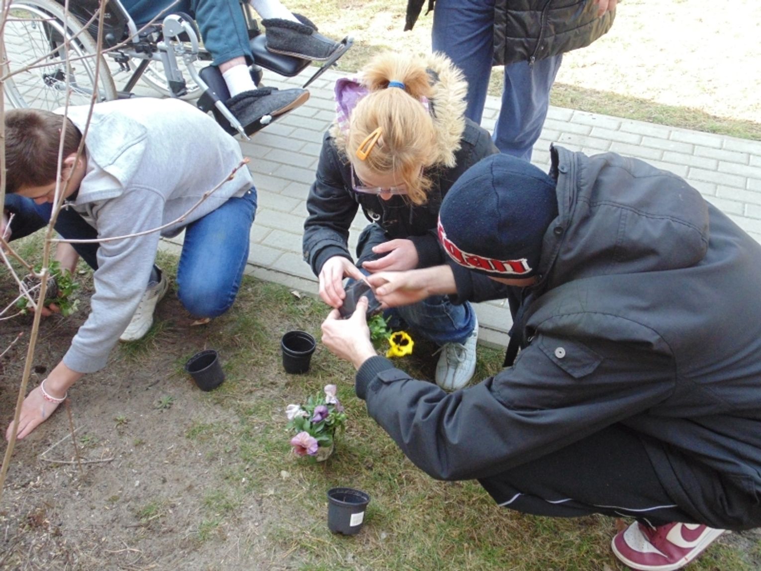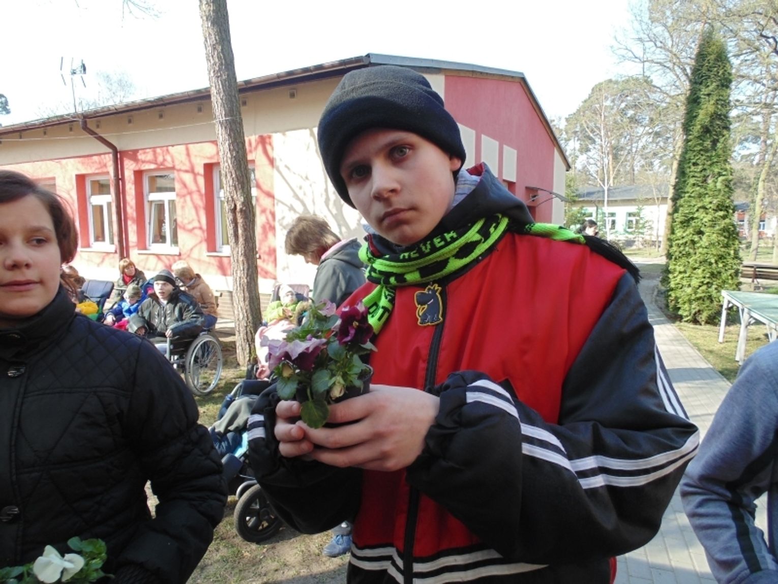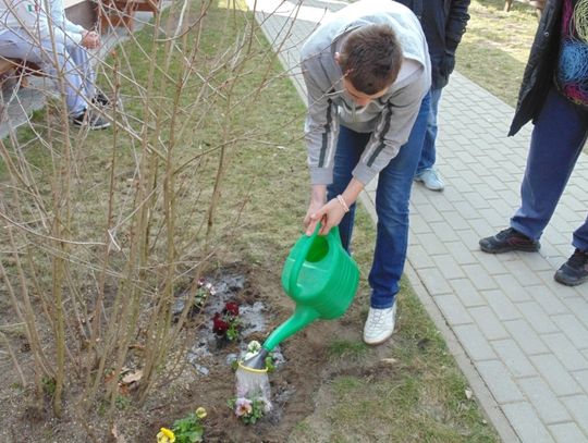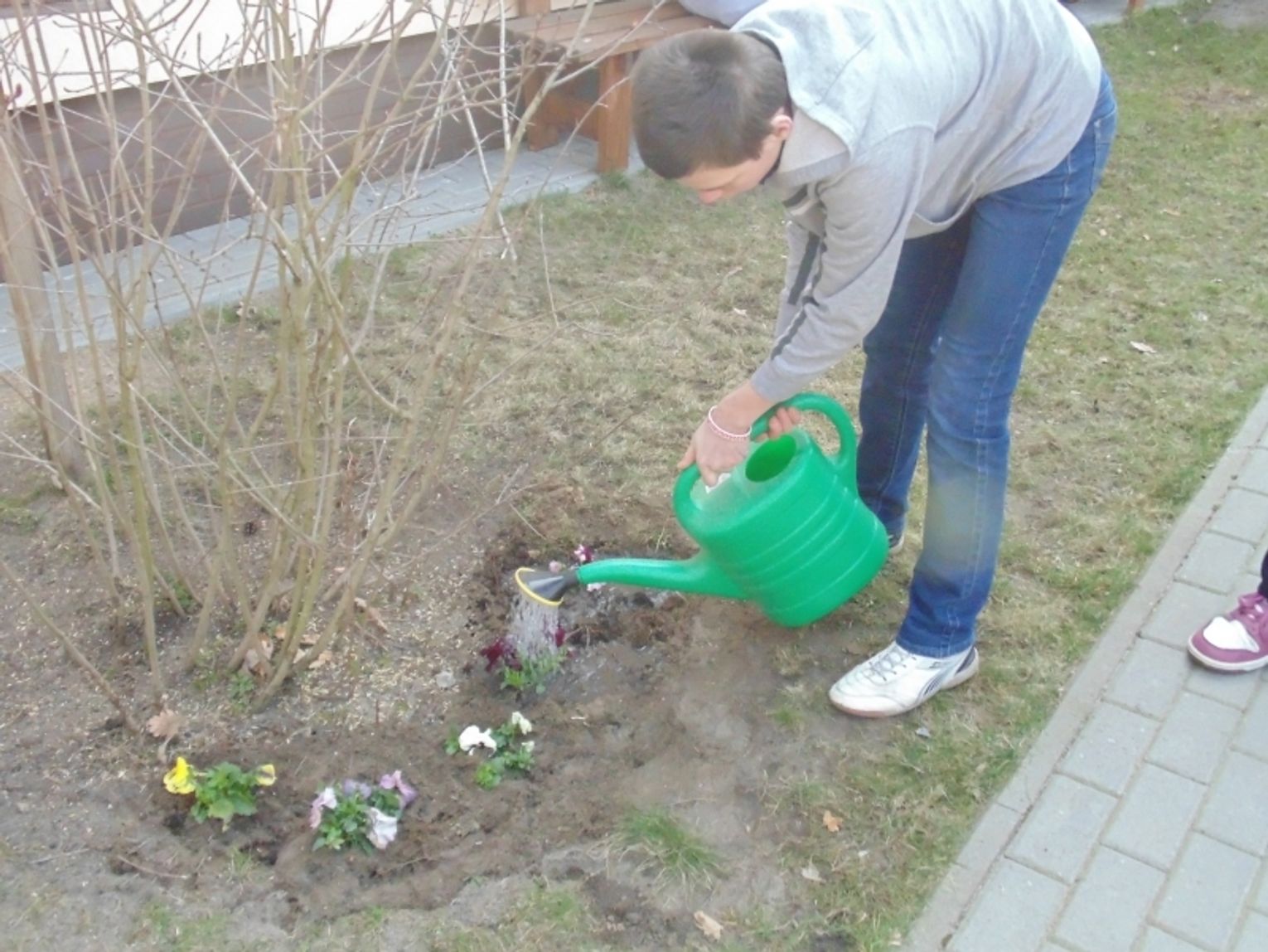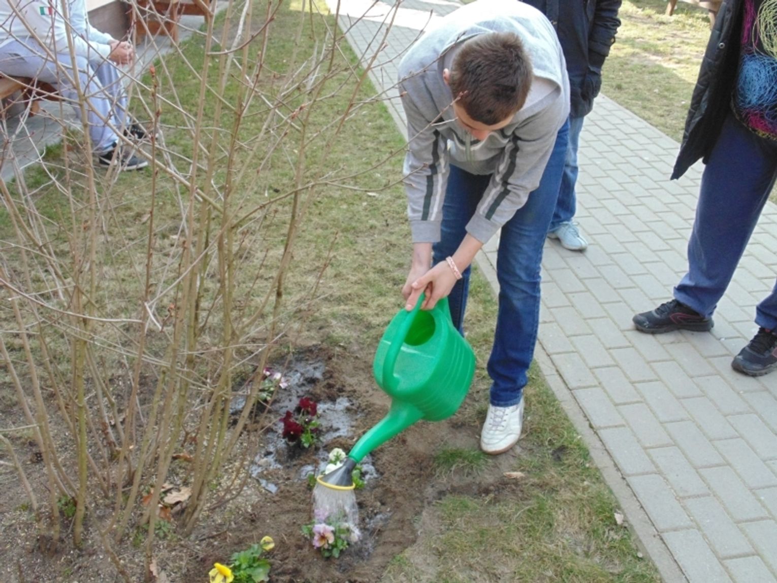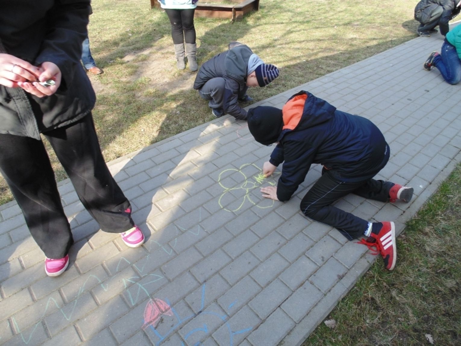 Po wesołej wędrówce wróciliśmy na plac przed szkołą. Wtedy dzieci posadziły bratki, na znak, że wiosna jest wśród nas. Pani Agnieszka Lebioda i pan Marcin Łapiński przygotowali dla dzieci ciekawe konkursy i zabawy. Odbył się między innymi konkurs plastyczny na najbarwniejszy rysunek o wiośnie. Pani Jolanta Romanowska wraz z dziećmi śpiewała stare i nowe przeboje wiosenne.