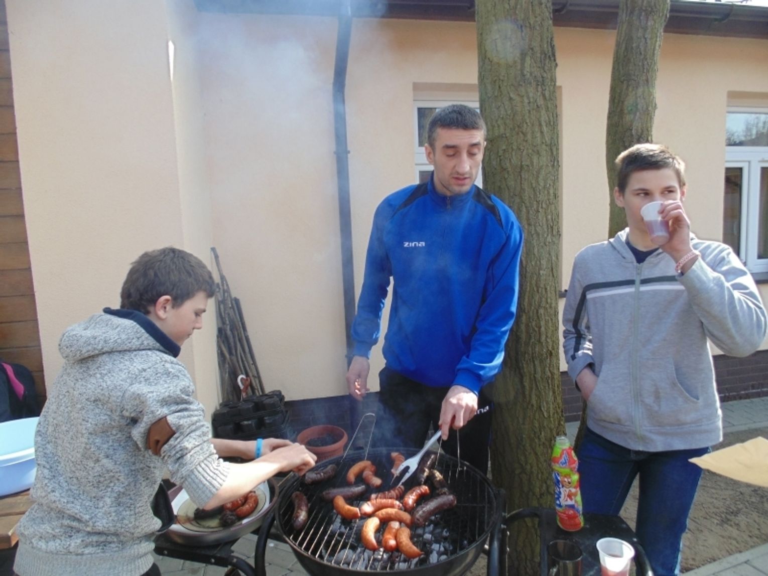 Po aktywnym wypoczynku przyszedł czas na ognisko. Dzieci wspólnie z nauczycielami upiekły kiełbaski, roznosiły napoje i deserki dla swoich kolegów. Czas upłynął szybko i przyjemnie w miłej atmosferze. Dodatkową atrakcją było oglądanie zaćmienia słońca. Szkoda, że ten dzień tak szybko minął.