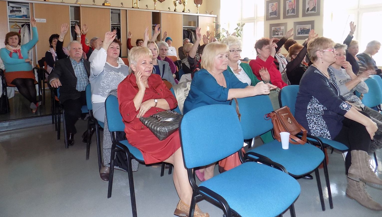 Prezes Krystyna Knop zadowolona. Sprawozdanie z działalności za rok 2014 zostało przyjęte, a projekt nowego statutu zatwierdzono prawie jednogłośnie. Omówienie pozostałych spraw również odbywało się wręcz po żołniersku. Szybkie tempo prowadzenia zebrania nie znalazło jednak uznania u wszystkich uczestników. Wiele osób uznało, że walne zgromadzenie nie było odpowiednio przygotowane, a sposób prowadzenia był nieco chaotyczny. Prowadząca czasami gubiła się i nie zawsze było wiadomo o co chodzi.