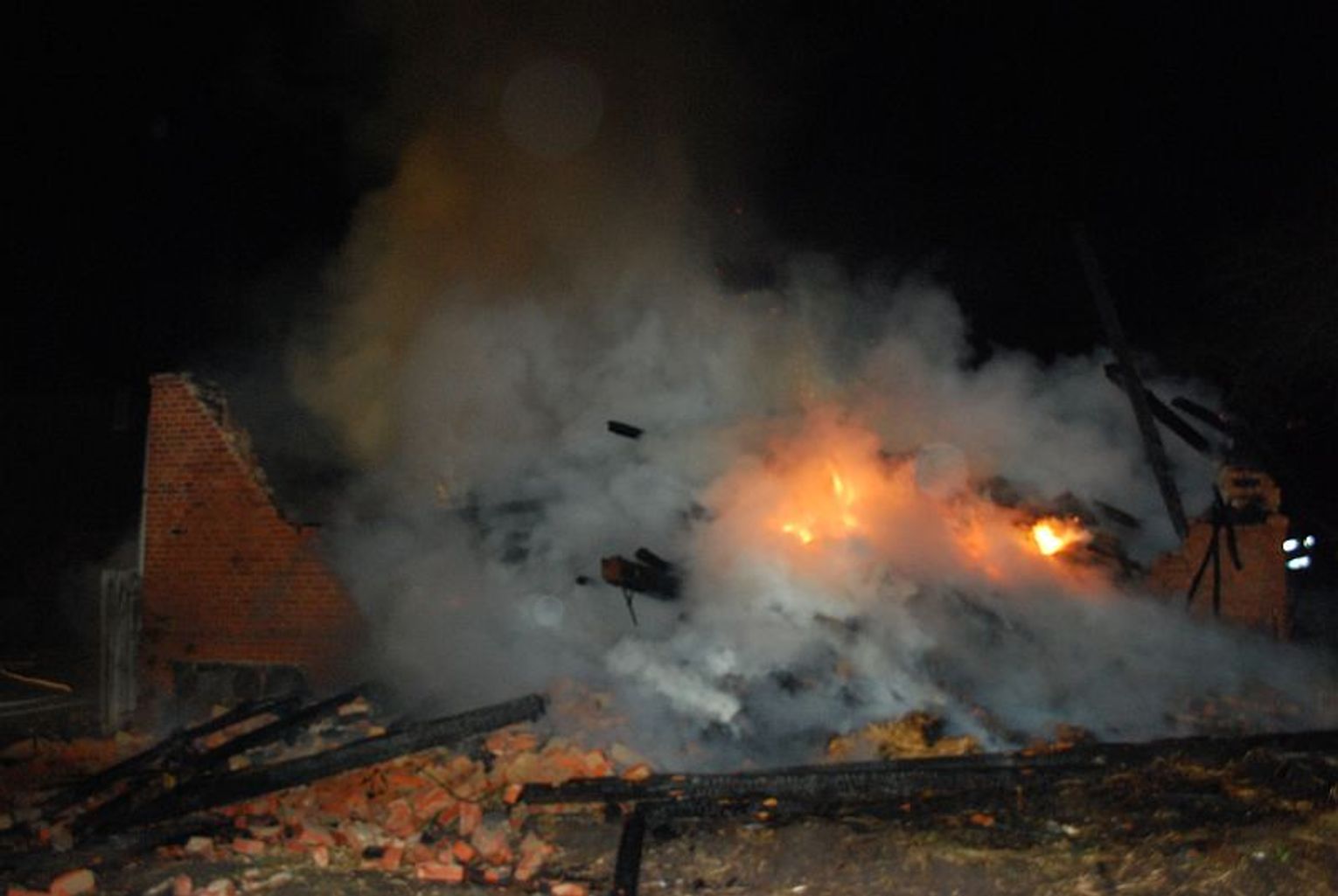 -Działania strażaków polegały na podaniu trzech prądów wody do wnętrza stodoły na palący się dach i słomę. Po zlokalizowaniu pożaru strażacy dogaszali powstające zarzewia ognia. Spaleniu uległ dach stodoły i słoma składowana w jej wnętrzu – relacjonuje strażak z Komendy Powiatowej Państwowej Straży Pożarnej w Gryfinie.