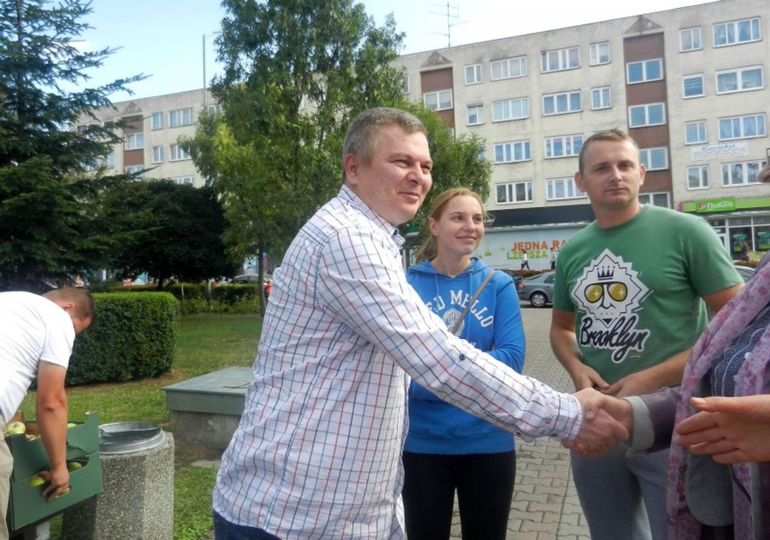 Jabłuszkowa akcja, zapoczątkowana bardzo spontanicznie na igryfino prawie pół roku temu m.in. przez Danutę Rolewską-Pająk miała wspaniały przebieg. Pora była wczesnojesienna, a że jabłka obrodziły w sadach i na działkach, postanowiono podzielić się z potrzebującymi. Przedsięwzięciu przyklaśnięto i grupa zaangażowanych osób, w tym obecna „trójka burmistrzowska” (Mieczysław Sawaryn, Paweł Nikitiński, Tomasz Miler), dzisiejszy radny Piotr Zwoliński, Danuta Rolewska-Pająk oraz Janina Nikitińska spotkali się przy gryfińskiej fontannie. Każdy przywiózł jabłka, a jak nie miał swoich z sadu, to skrzynkę owoców dokupił. Jabłka zebrano i gdzie trzeba zawieziono. Trafiły m.in. do szpitala i Domu Dziecka. Przy fontannie zrodził się wówczas pomysł, żeby następnym razem zebrać słoiki z przetworami i w te same lub inne miejsca dostarczyć. Pomysłowi wszyscy przyklasnęli, przetwory przynieść obiecali i… nic. Obietnica czeka na spełnienie.