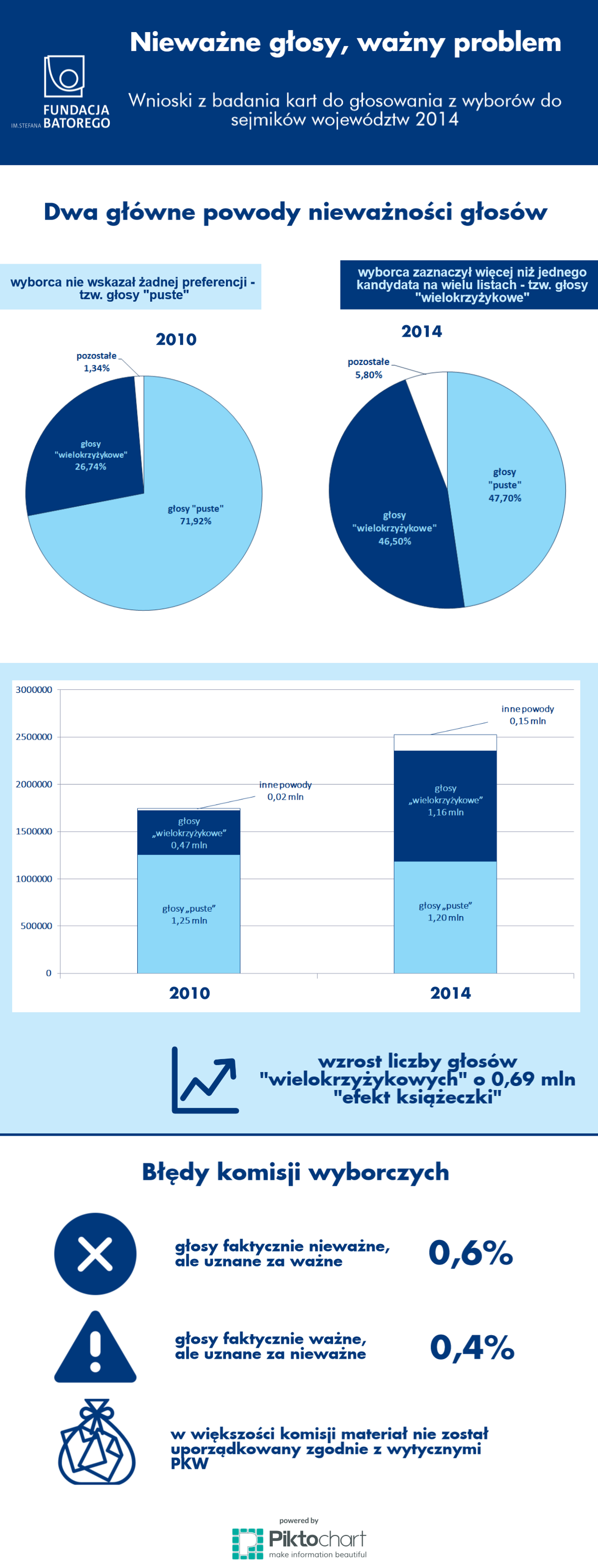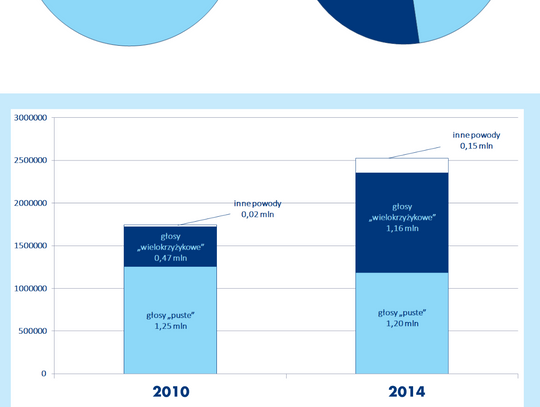 Liczba głosów pustych (bez skreśleń) oddanych w 2014 roku była zbliżona do liczby z 2010 r. Co istotne, choć sporadycznie zdarzało się, że komisje błędnie klasyfikowały głosy ważne i nieważne, nie miało to znaczącego wpływu na wynik wyborów (błędnie zaklasyfikowane głosy oddane na różne partie wzajemnie się znosiły).