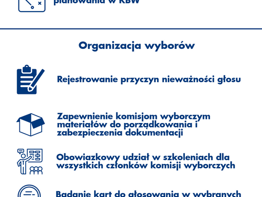 · opracowanie przez KBW strategii działań edukacyjnych i informacyjnych na temat zasad i procedur wyborczych oraz kompetencji i jednostek samorządu terytorialnego