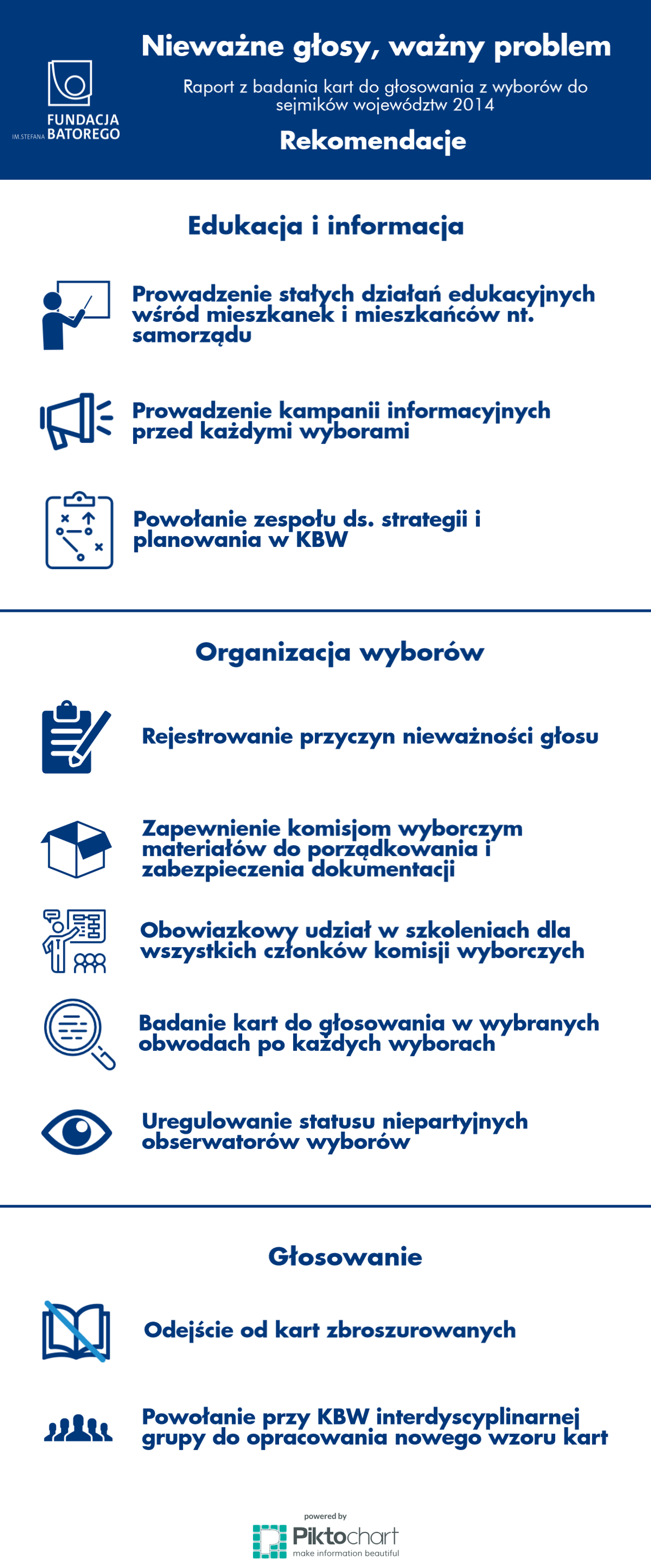 · pilne powołanie przez KBW interdyscyplinarnej grupy roboczej (z udziałem ekspertów od komunikacji społecznej) do opracowania nowego wzoru kart wyborczych i materiałów informacyjnych na wybory 2018