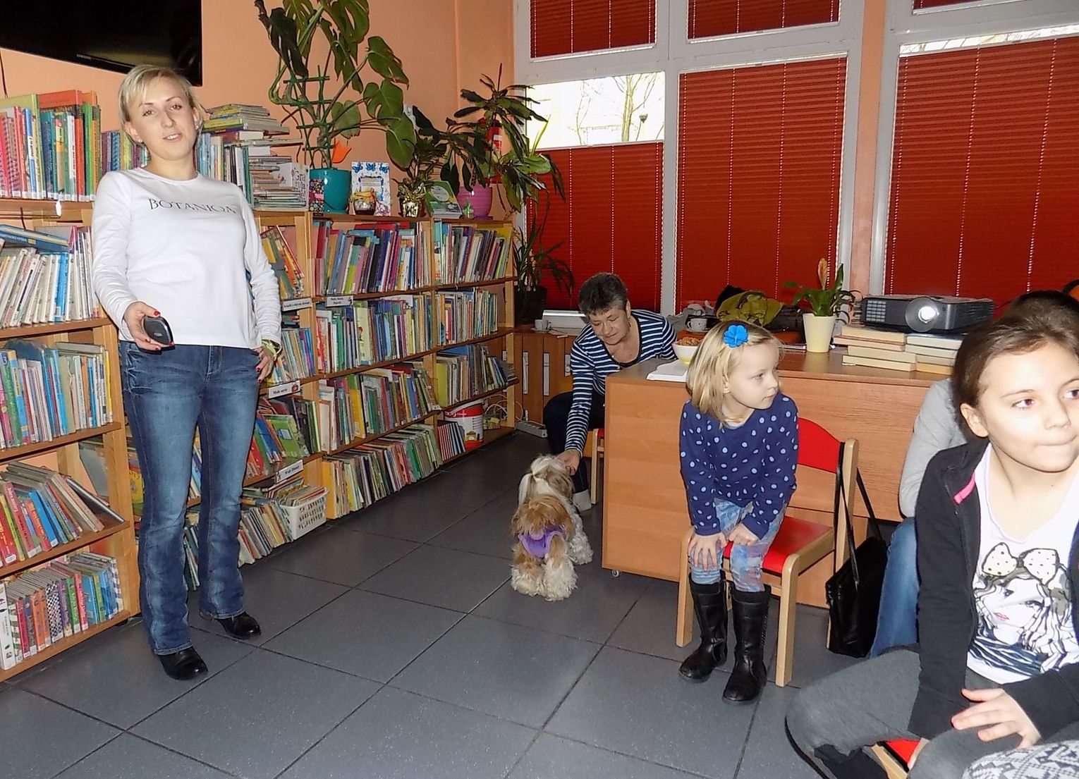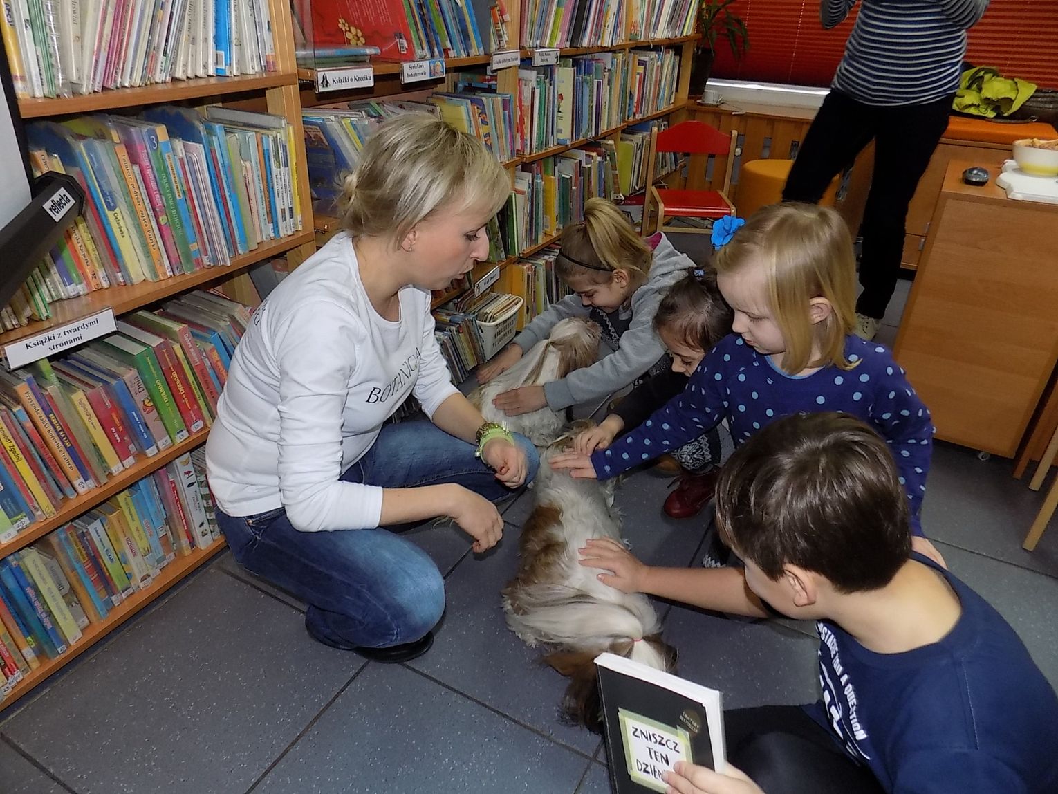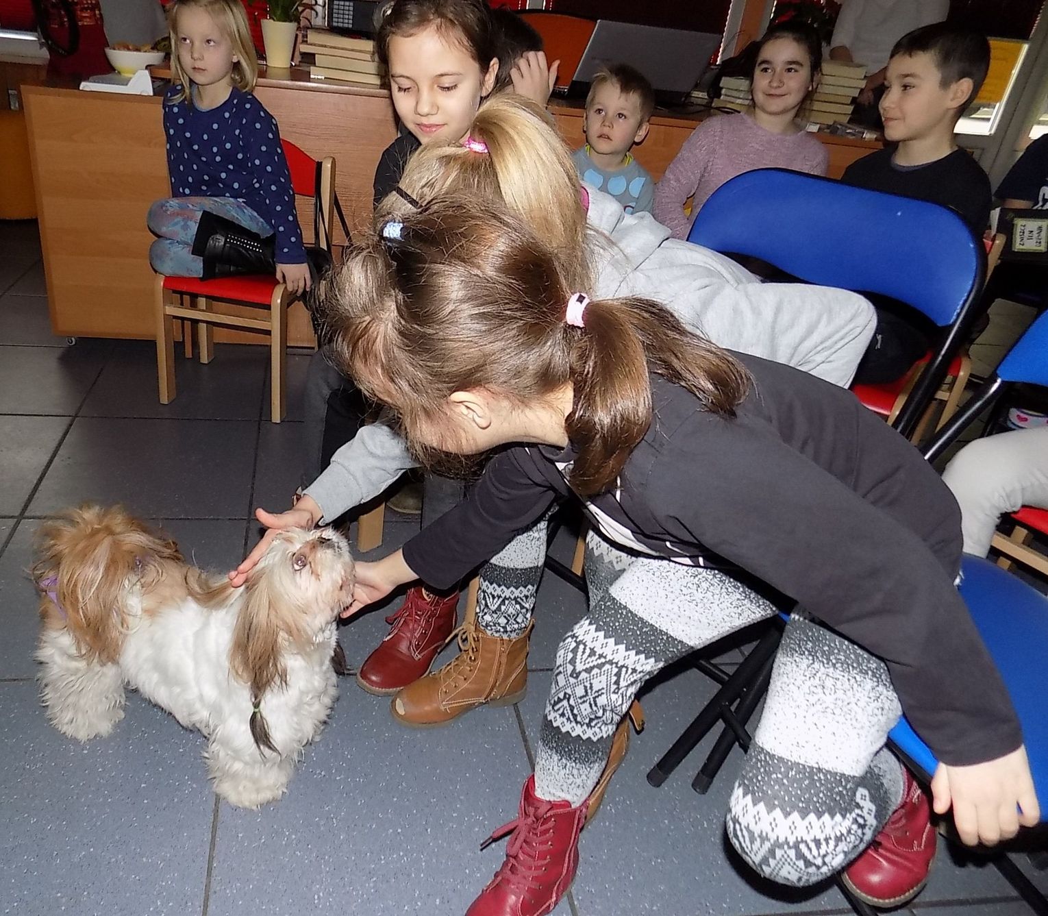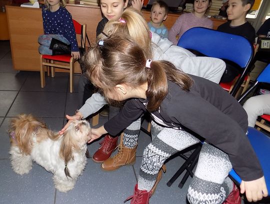Zwierzęta o imionach Lea i Nel są rasy shih tzu. Pieski były dwa, ale frajda sprawiona dzieciakom pomnożona do potęgi. Pani Agnieszka opowiadała jak należy dbać o swoje czworonogi - o kąpieli, kosmetykach, o tym, że dbanie o czystość na spacerze jest obowiązkowa. Mówiła również o rasach psów, które pomagają policjantom, strażakom, ratownikom w górach czy osobom niewidzącym.