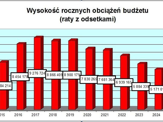 W roku obecnym spłata rat i odsetek to 6,1 miliona złotych. W kolejnych latach spłacić trzeba: 8,5 miliona złotych (2016), 9,3 miliona złotych (2017), 8,7 miliona złotych (2018).