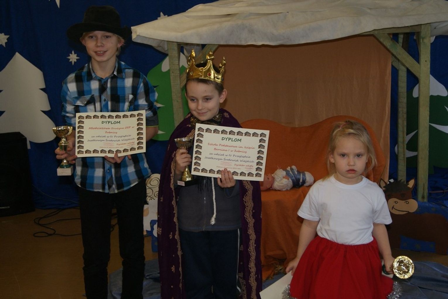 Wszystkie przedstawienia były bardzo dobrze przygotowane przez opiekunów i zebrały moc oklasków od wszystkich widzów. Największy aplauz wzbudził już tradycyjnie występ najmłodszych uczestników z Ogniska Przedszkolnego w Starych Brynkach. Wszystkie występujące w Żabnicy grupy otrzymały puchary i dyplomy, a spotkanie zakończył słodki poczęstunek wraz z zaproszeniem na przyszłoroczny przegląd.