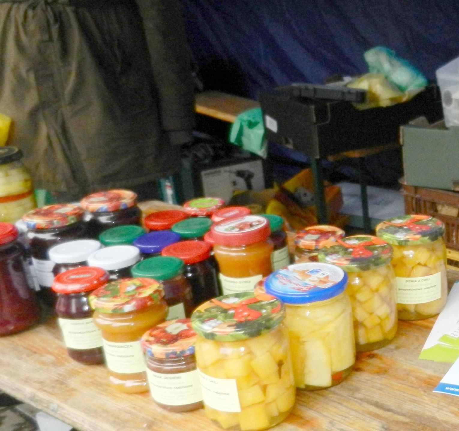 A tam kuszą ciasta własnego wypieku. Świetne czekoladowe pierniki, makowce, ciasto marchewkowo-czekoladowe oraz inne świąteczne pyszności. Dalej chleby, bułki, bułeczki. W słoikach różniste przetwory z produktów własnoręcznie zbieranych i przygotowanych. Ryby po grecku również nie zabrakło.
