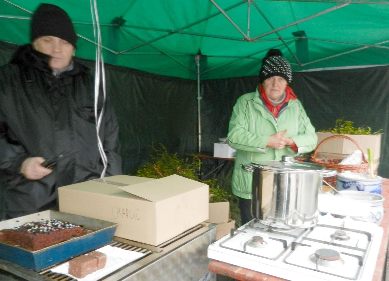Kto nie chce choinki na święta, ten może kupić stroiki wykonane przez młodzież szkolną z Gardna i Gryfina. Nie zabrakło również pań z kół gospodyń z Wełtynia i Daleszewa. Stowarzyszenie Feniks zmarzniętym oferuje gorący barszcz, pajdę chleba ze smalcem oraz kakao i pierniczki. Są również wędliny ekologiczne ze Szczecina.