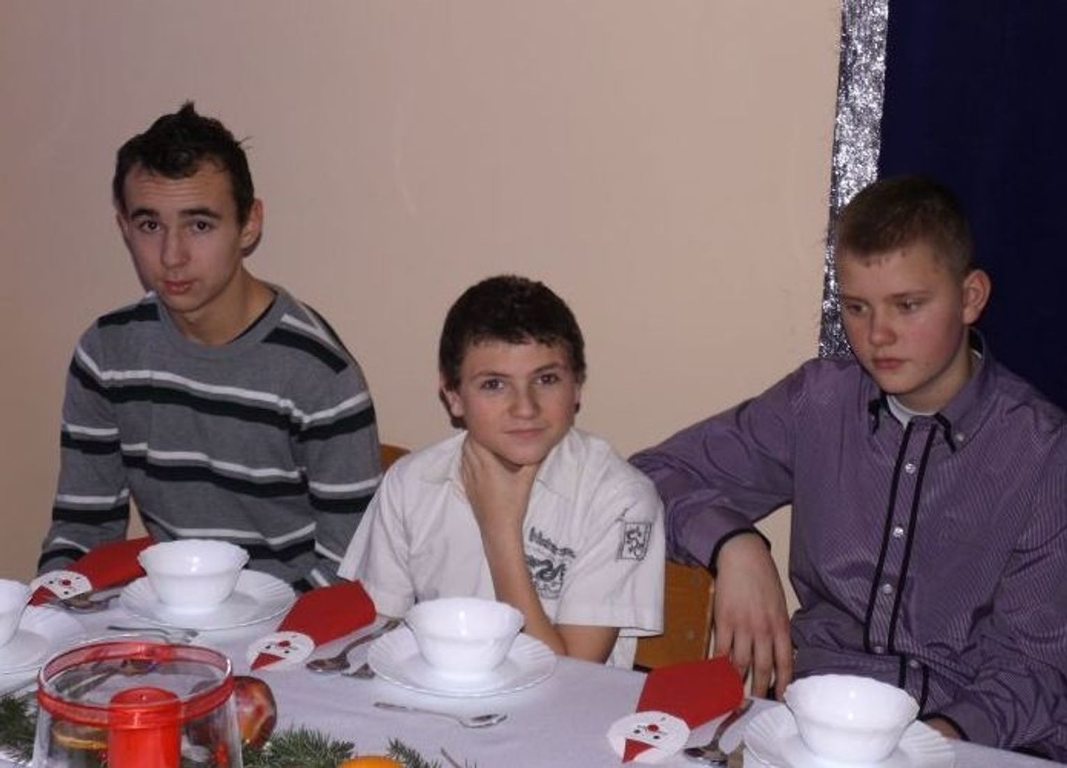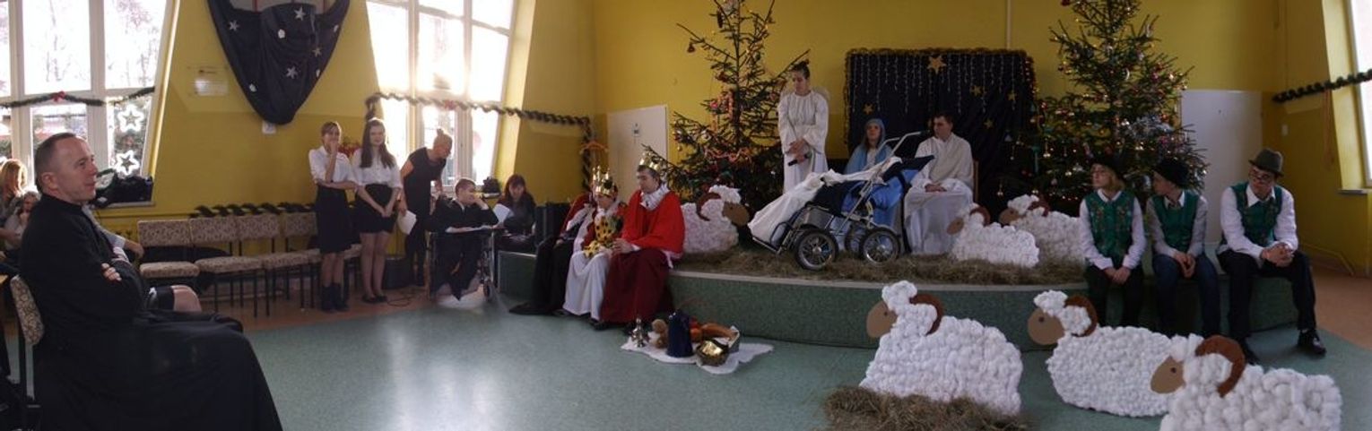 Później spotkaliśmy się w szkole przy wigilijnym stole. Uczniowie z wychowawcami i rodzicami przygotowali tradycyjne potrawy, sałatki i ciasta. Wspólnie śpiewaliśmy kolędy.