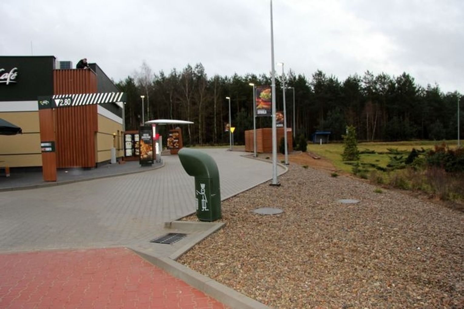 Na sali jadalnej znajdują się 72 miejsca siedzące, a na zewnątrz 150. Dla kierowców samochodów osobowych został przygotowany duży parking oraz linia McDrive, która umożliwia zakup ulubionych produktów bez potrzeby wysiadania z samochodu.
