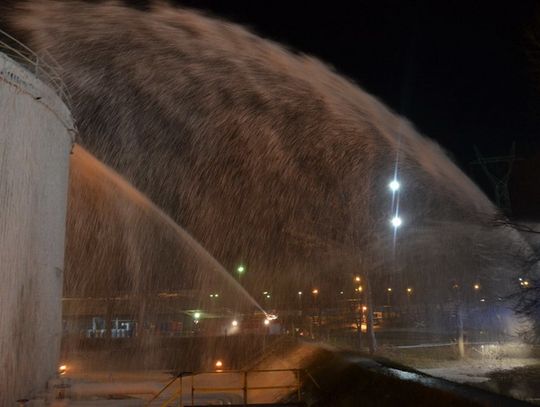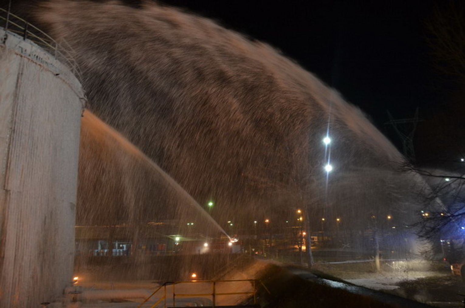 Działania polegały na przeszukaniu terenu akcji, udzieleniu pomocy poszkodowanym, podaniu prądów piany w natarciu na płonący zbiornik i wannę wychwytującą mazut oraz prądów wody w obronie zagrożonych obiektów znajdujących się w sąsiedztwie pożaru. Podczas ćwiczeń sprawdzono również działanie instalacji tryskaczowej chroniącej zbiorniki z mazutem.
