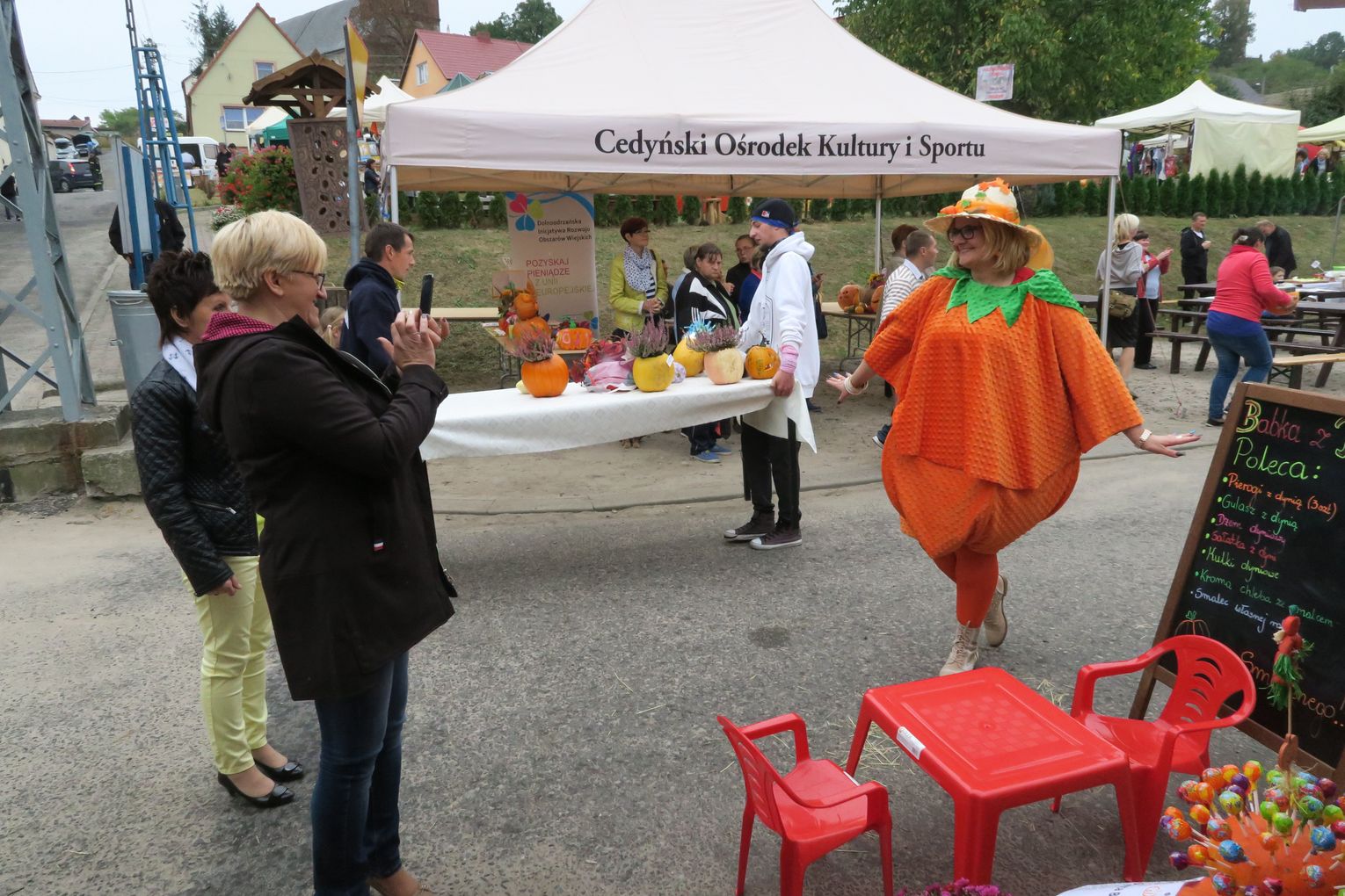 Dużym dystansem do siebie oraz poczuciem humoru wykazała się dyniowa Babka z Piasku prowadząca Turystykę Wiejską „Leśniczówka”. Jest pomarańczowa niczym dynia i na dodatek odnosi się wrażenie, że unosi się w powietrzu. Podczas Festiwalu „Cedynia na okrągło” Dorota Bogdanowicz była niewątpliwą i wyjątkową atrakcją sobotniej imprezy.