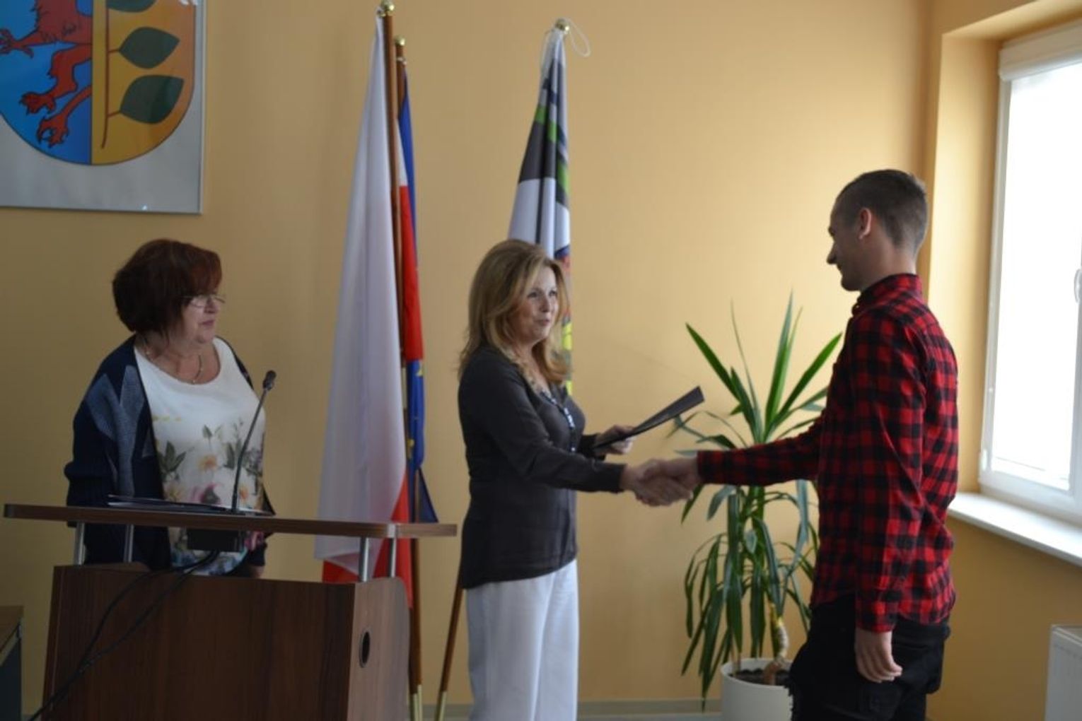 Stypendia uroczyście wręczały wójt Marzena Grzywińska i Przewodnicząca Rady Gminy Alina Przybysz podczas XX sesji Rady Gminy Stare Czarnowo.