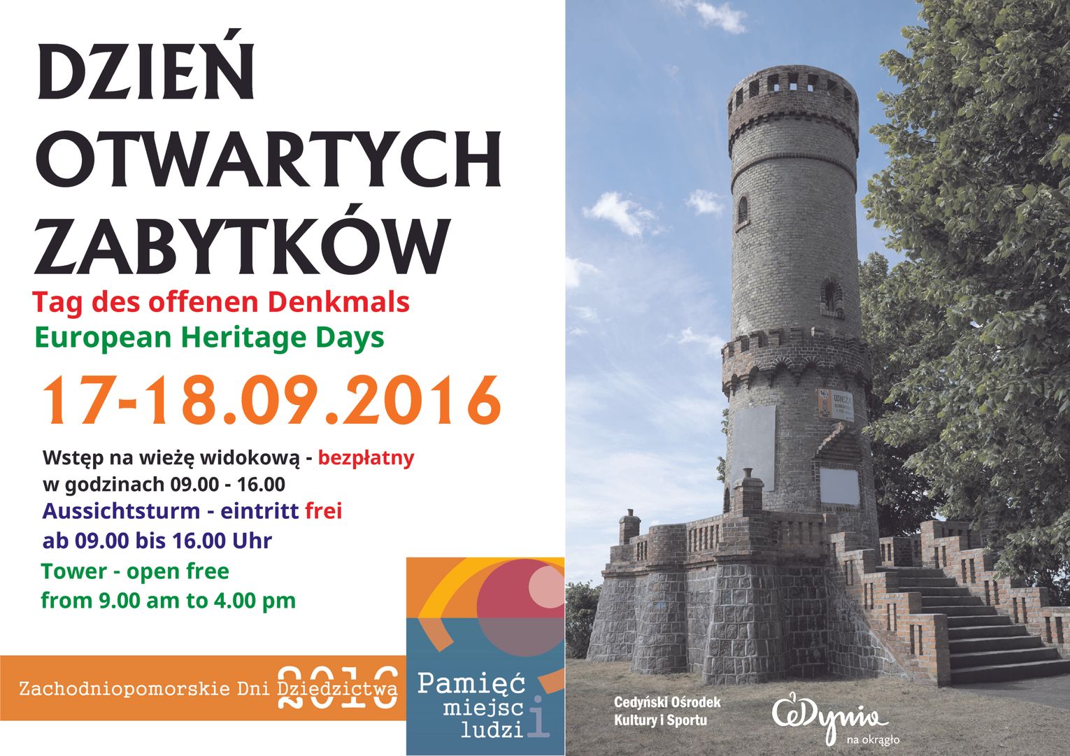 Dzień Otwartych Zabytków organizuje Cedyński Ośrodek Kultury i Sportu. -Wieża widokowa w Cedyni w ten weekend udostępniona będzie bezpłatnie. Zapraszamy do podziwiania panoramy miasta w ostatnie dni astronomicznego lata! – przekonuje Malwina Markiewicz.