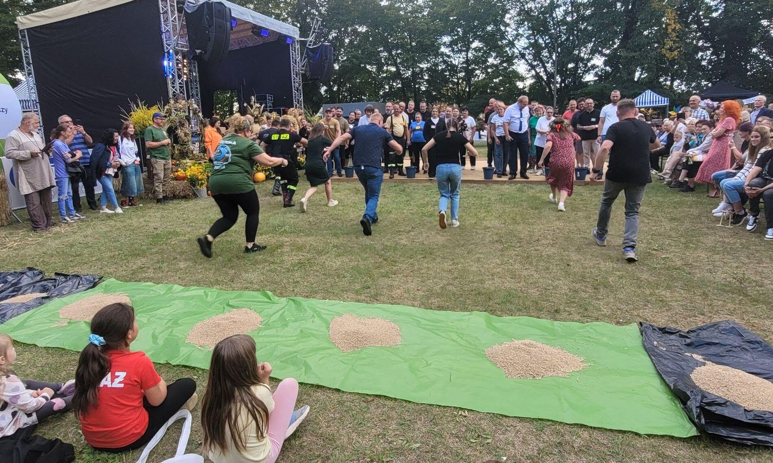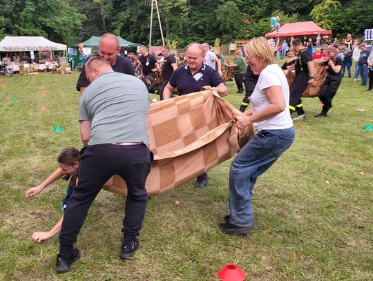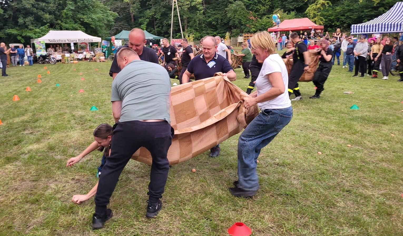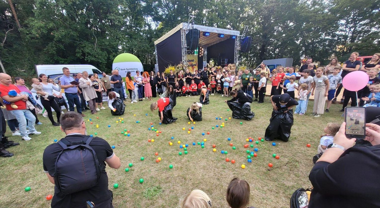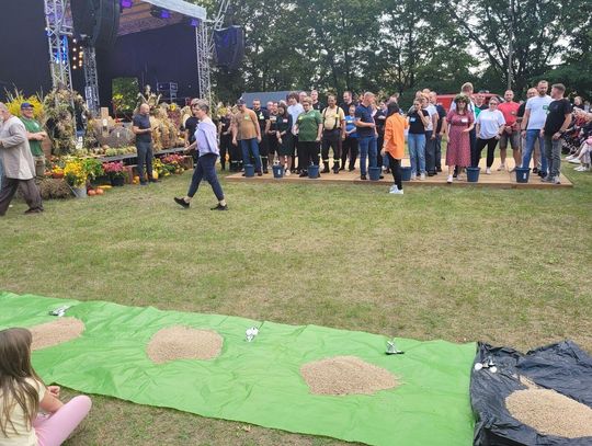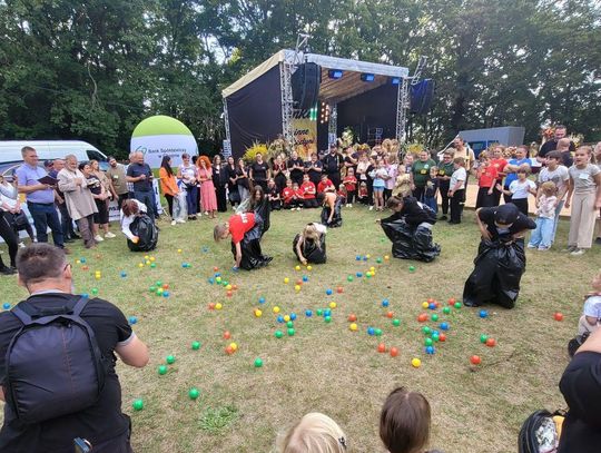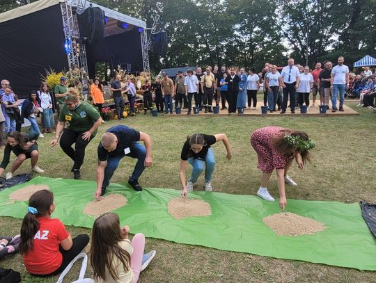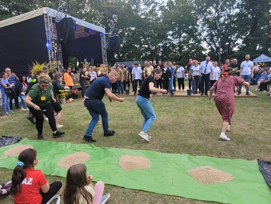 Wiele ciekawych konkurencji dla dzieci i dorosłych przygotowali organizatorzy święta plonów w Cedyni 6 września 2025 r. Były m.in. skoki w workach i zbieranie rozrzuconych piłeczek, łowienie jabłek pływających w miniakwariach, wyścigi w nabieraniu ziaren łyżką, wyszukiwanie grosików w zbożu, rzut snopem, wyścigi w kocach i zbieranie jajek.