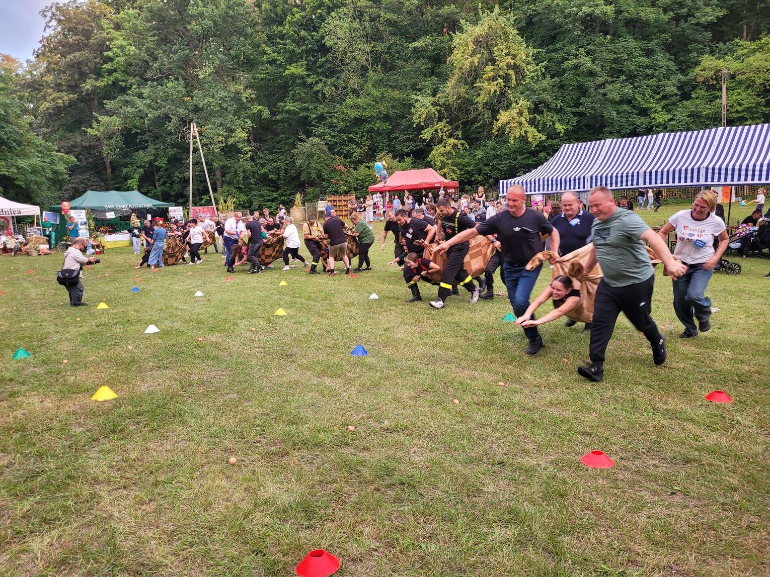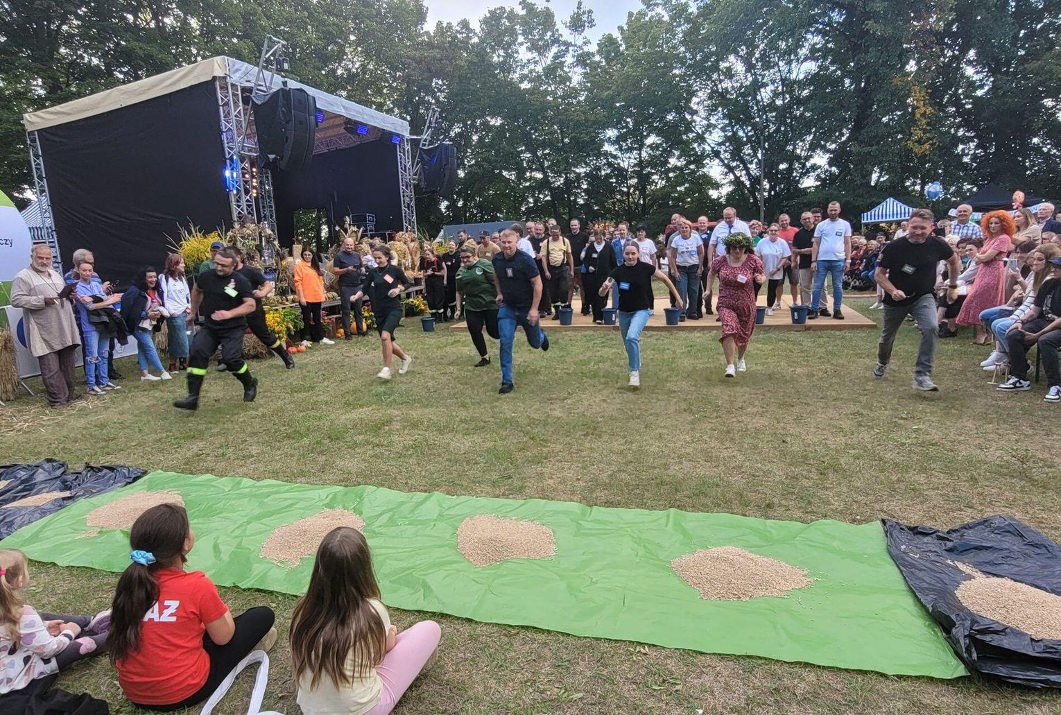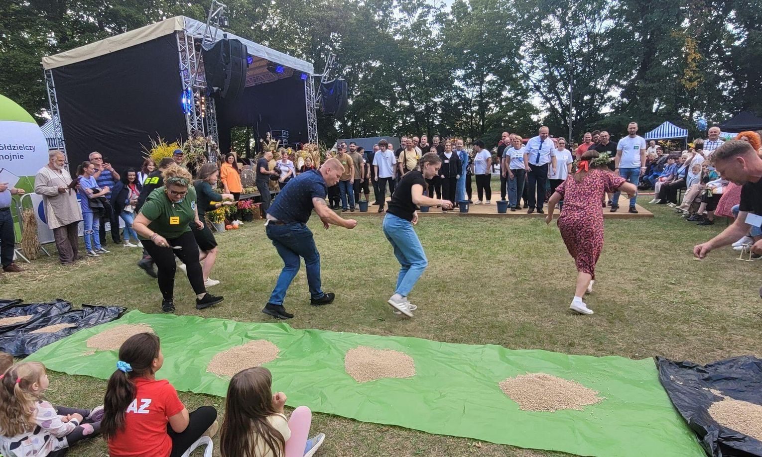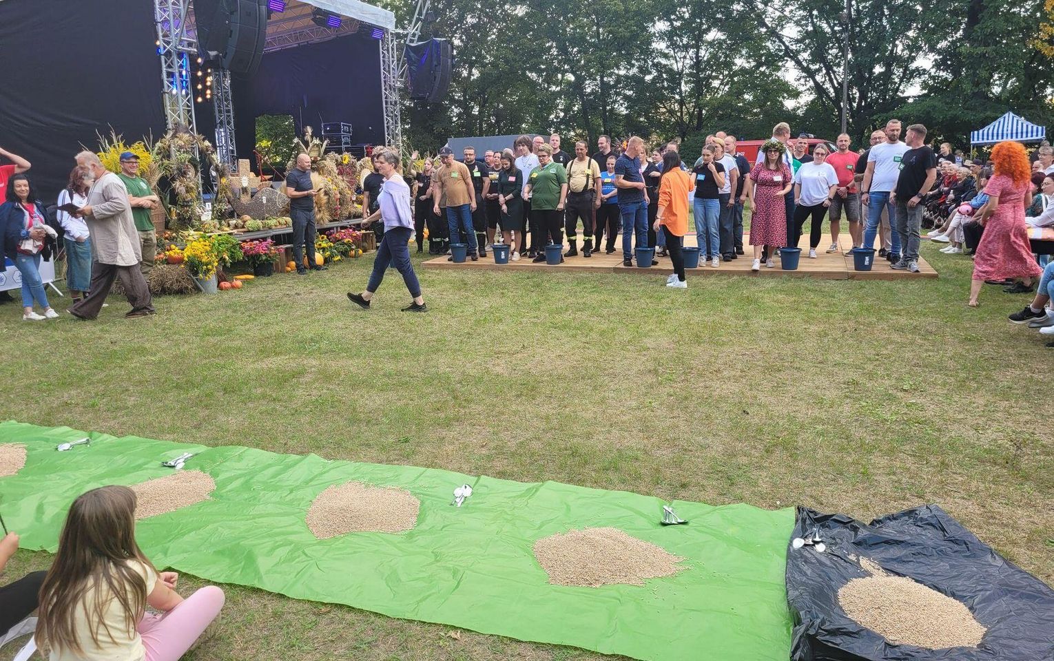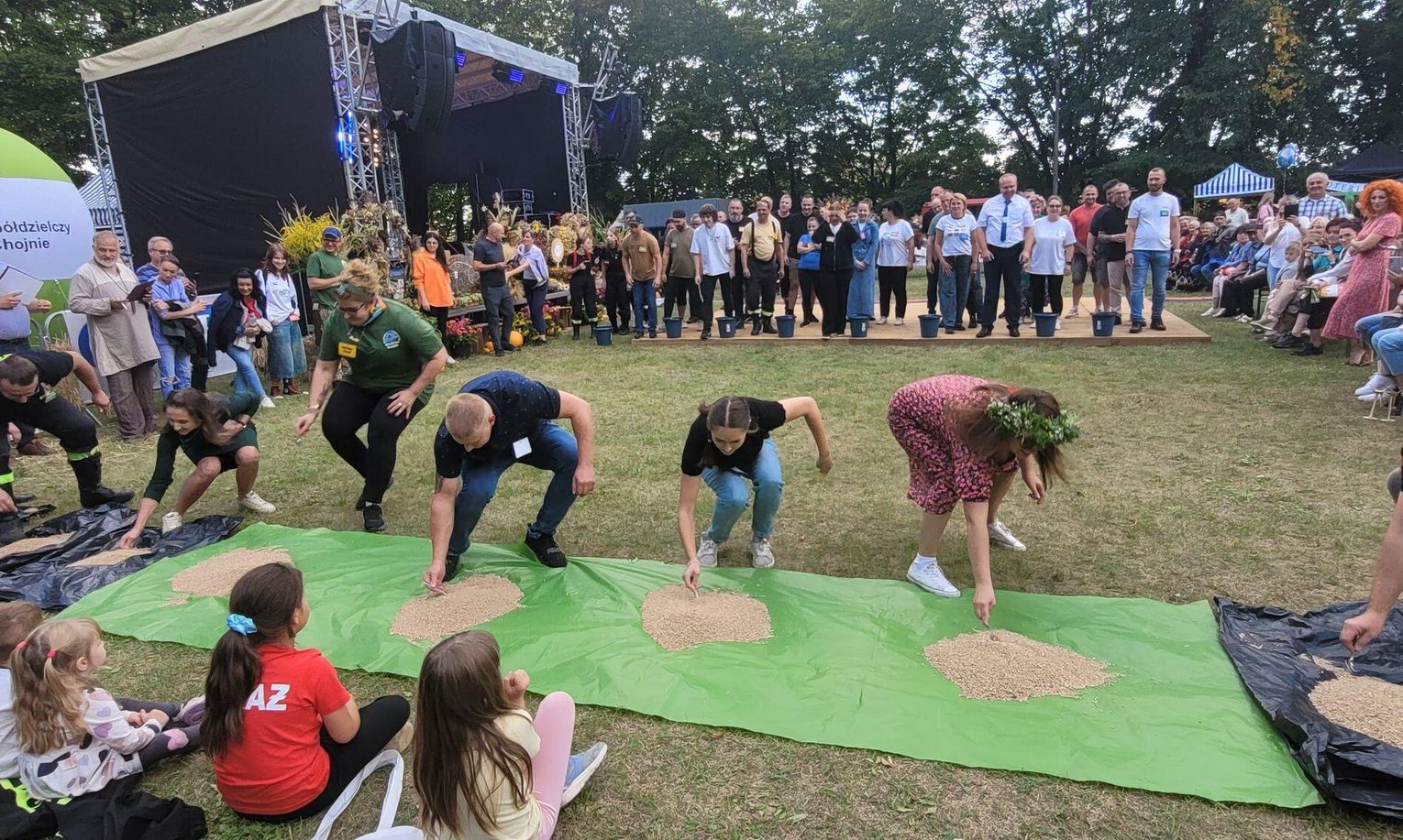 Wiele ciekawych konkurencji dla dzieci i dorosłych przygotowali organizatorzy święta plonów w Cedyni 6 września 2025 r. Były m.in. skoki w workach i zbieranie rozrzuconych piłeczek, łowienie jabłek pływających w miniakwariach, wyścigi w nabieraniu ziaren łyżką, wyszukiwanie grosików w zbożu, rzut snopem, wyścigi w kocach i zbieranie jajek.