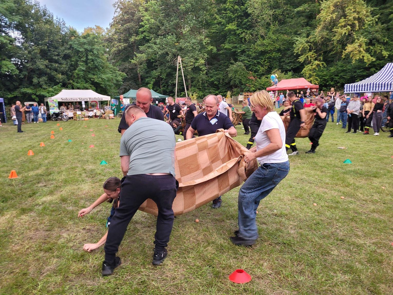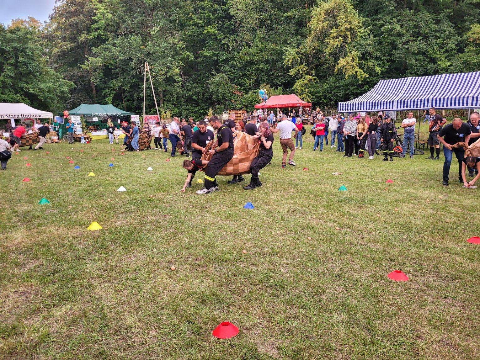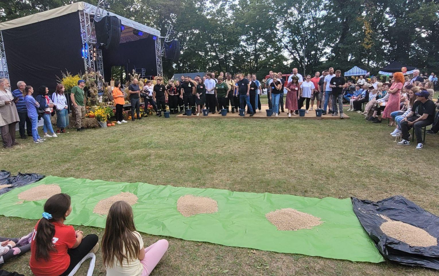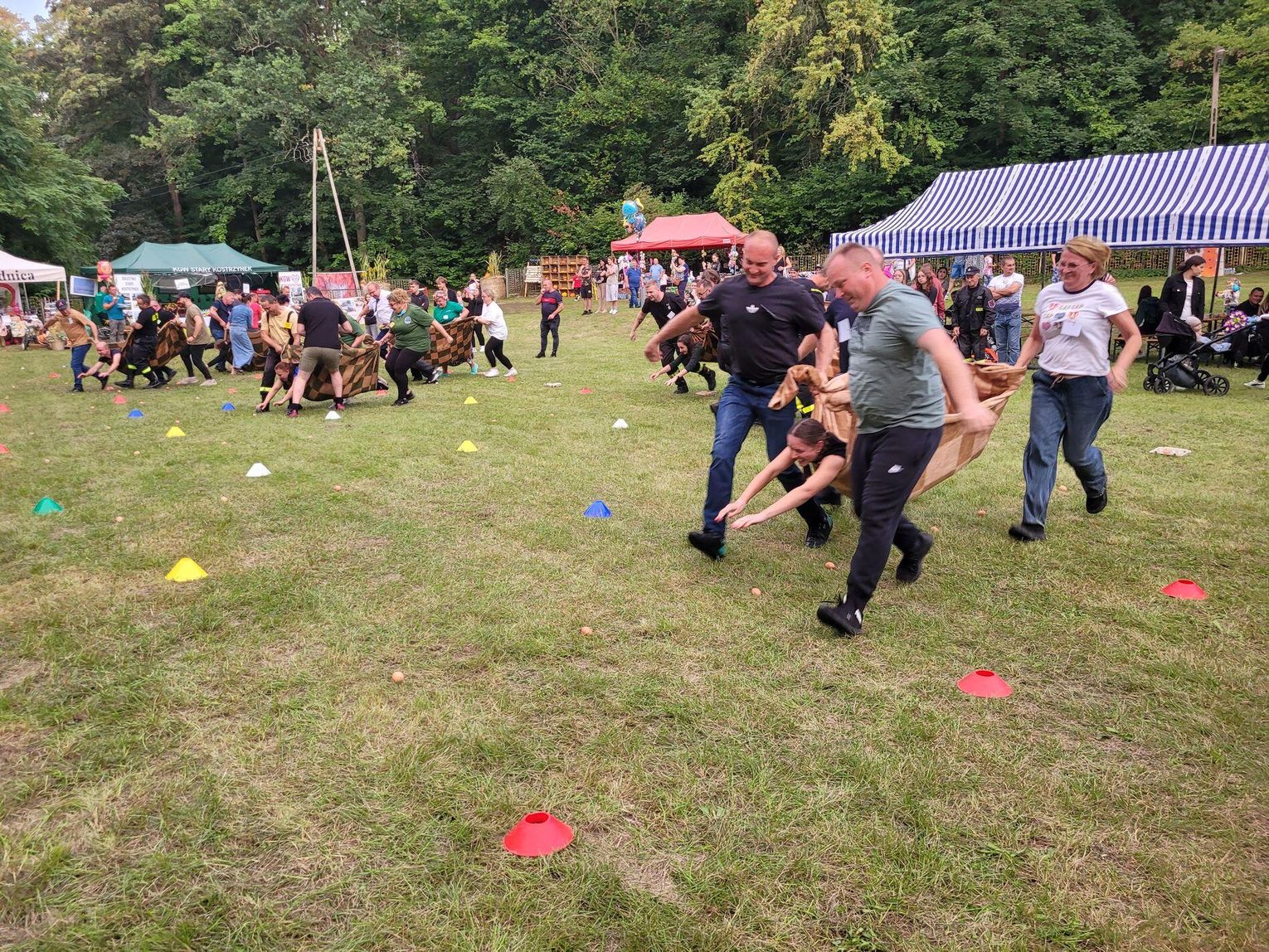 Wiele ciekawych konkurencji dla dzieci i dorosłych przygotowali organizatorzy święta plonów w Cedyni 6 września 2025 r. Były m.in. skoki w workach i zbieranie rozrzuconych piłeczek, łowienie jabłek pływających w miniakwariach, wyścigi w nabieraniu ziaren łyżką, wyszukiwanie grosików w zbożu, rzut snopem, wyścigi w kocach i zbieranie jajek.