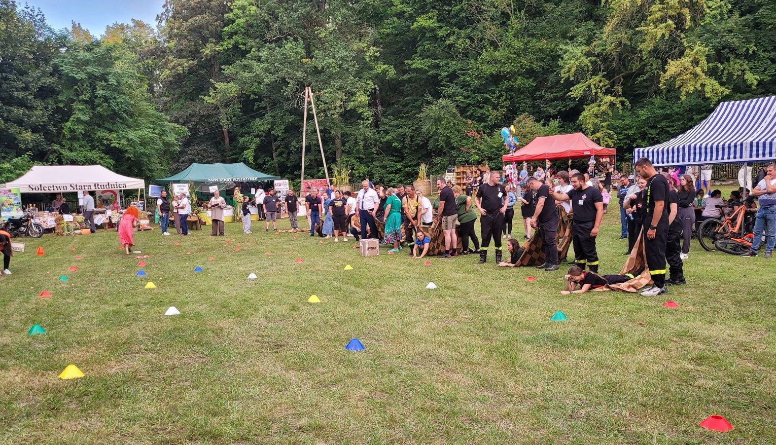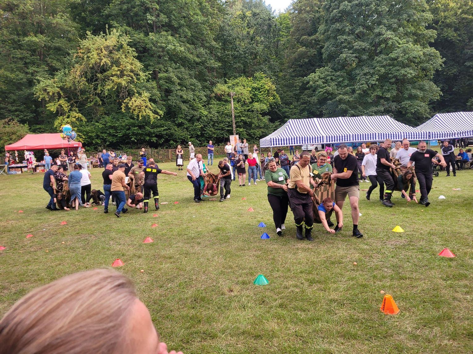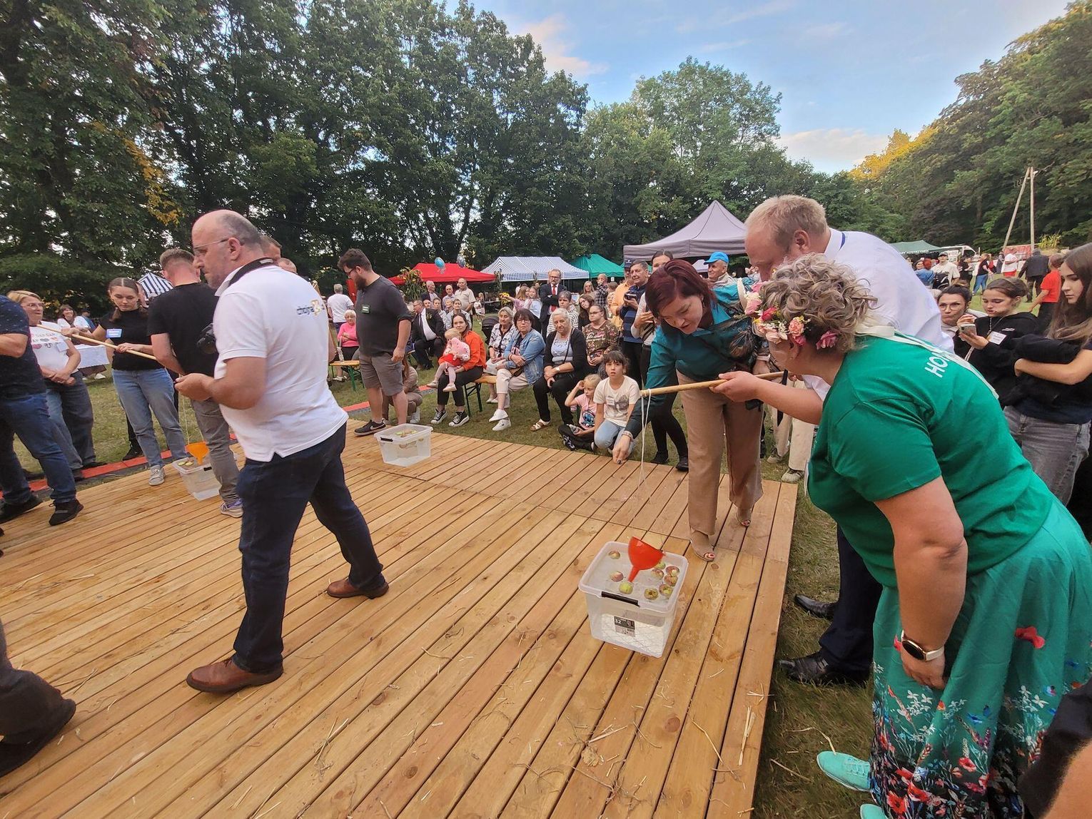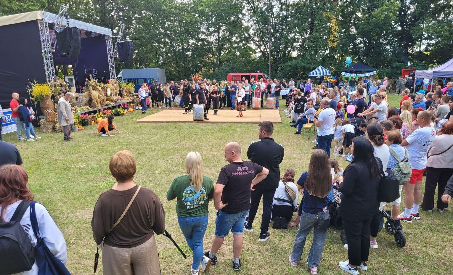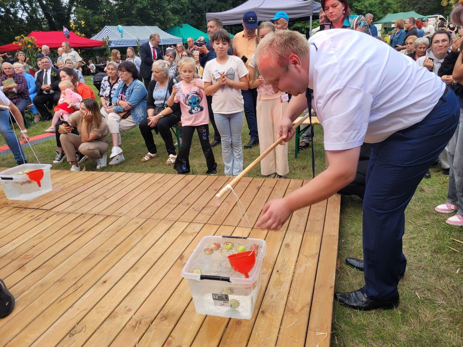 Wiele ciekawych konkurencji dla dzieci i dorosłych przygotowali organizatorzy święta plonów w Cedyni 6 września 2025 r. Były m.in. skoki w workach i zbieranie rozrzuconych piłeczek, łowienie jabłek pływających w miniakwariach, wyścigi w nabieraniu ziaren łyżką, wyszukiwanie grosików w zbożu, rzut snopem, wyścigi w kocach i zbieranie jajek.