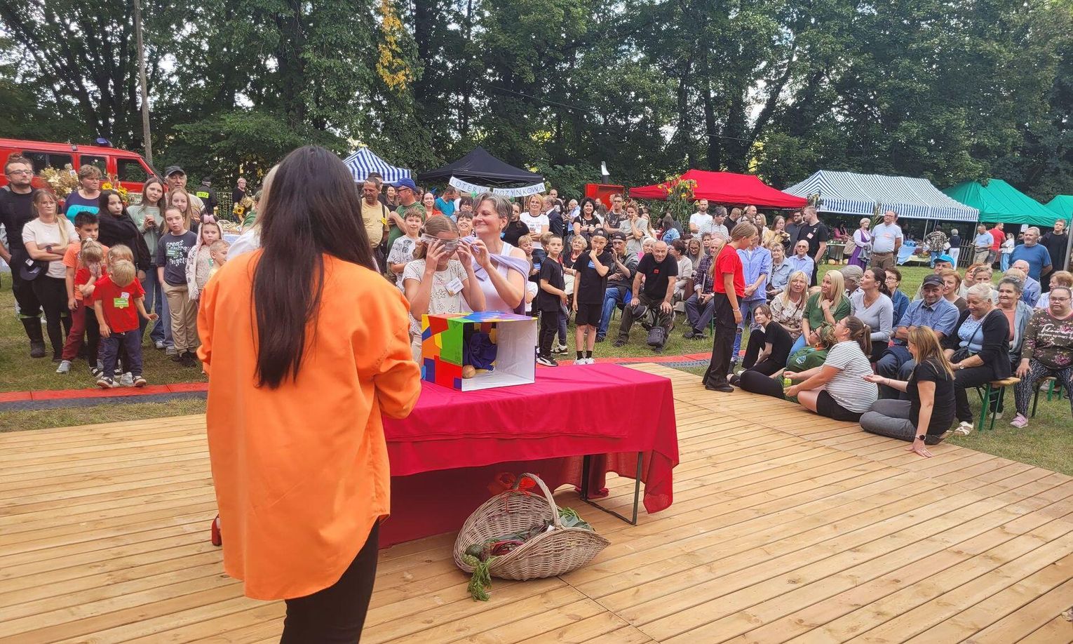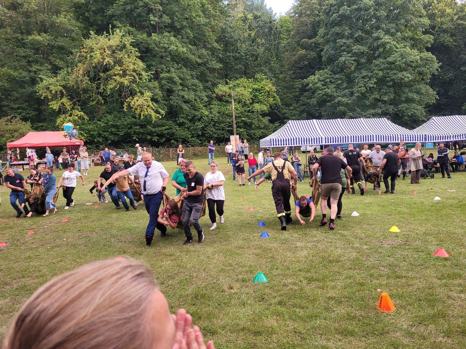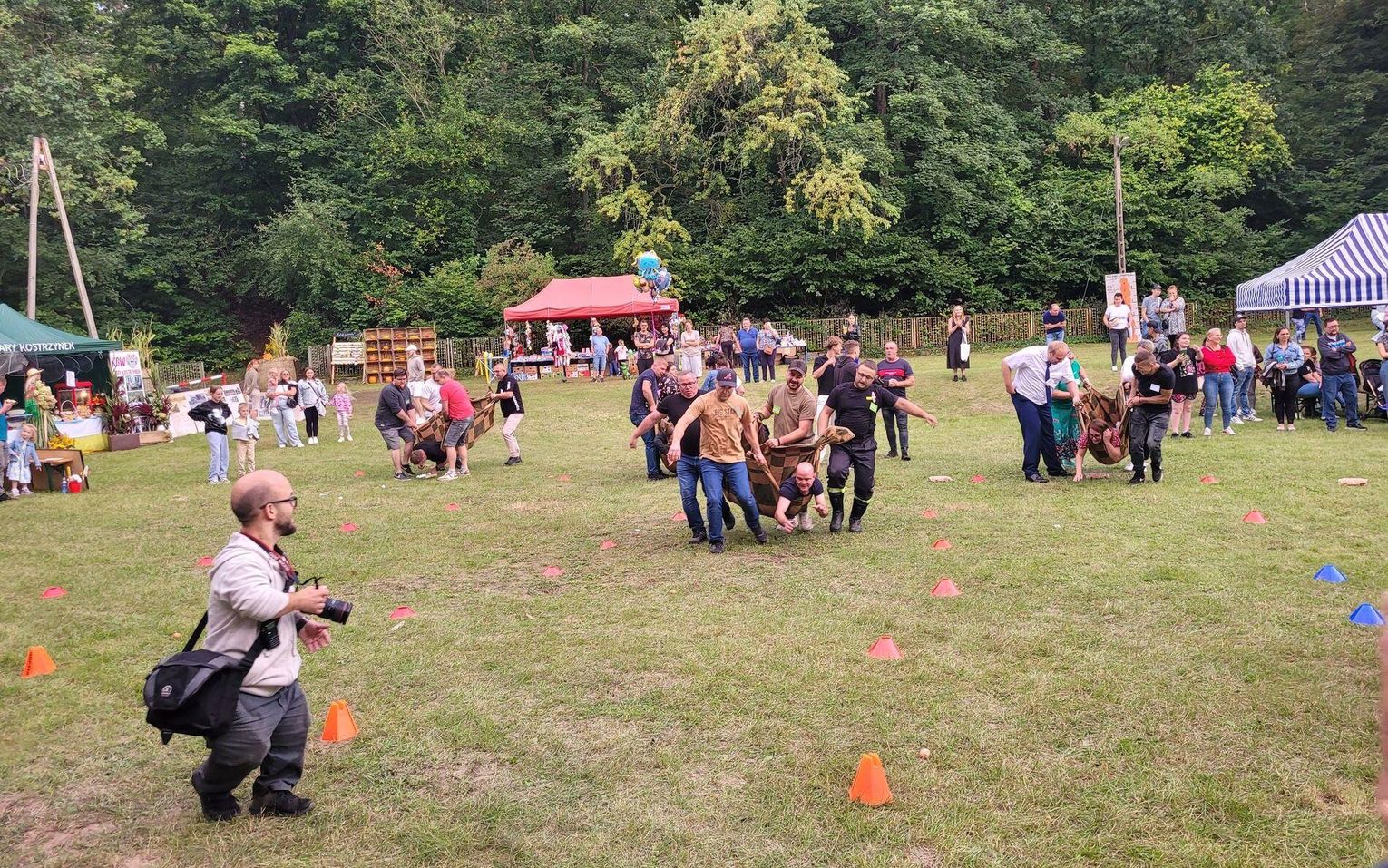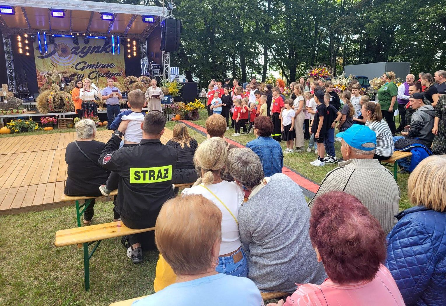 Wiele ciekawych konkurencji dla dzieci i dorosłych przygotowali organizatorzy święta plonów w Cedyni 6 września 2025 r. Były m.in. skoki w workach i zbieranie rozrzuconych piłeczek, łowienie jabłek pływających w miniakwariach, wyścigi w nabieraniu ziaren łyżką, wyszukiwanie grosików w zbożu, rzut snopem, wyścigi w kocach i zbieranie jajek.